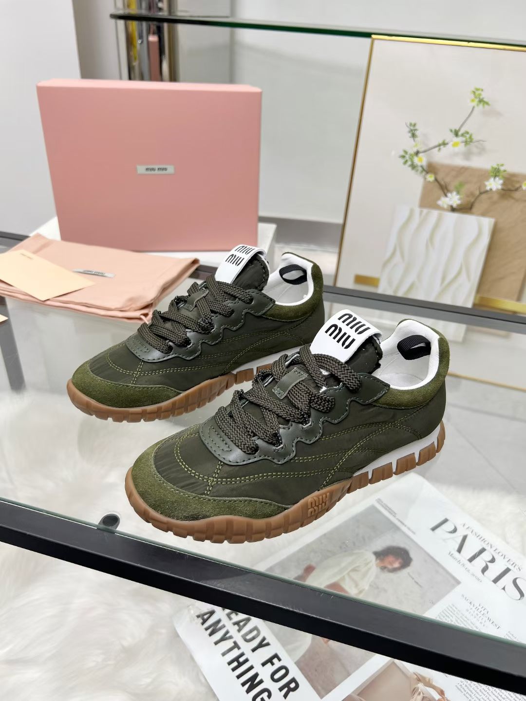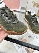 Miu TYRE Sneakers Olive Green Suede Technical Fabric 456331
