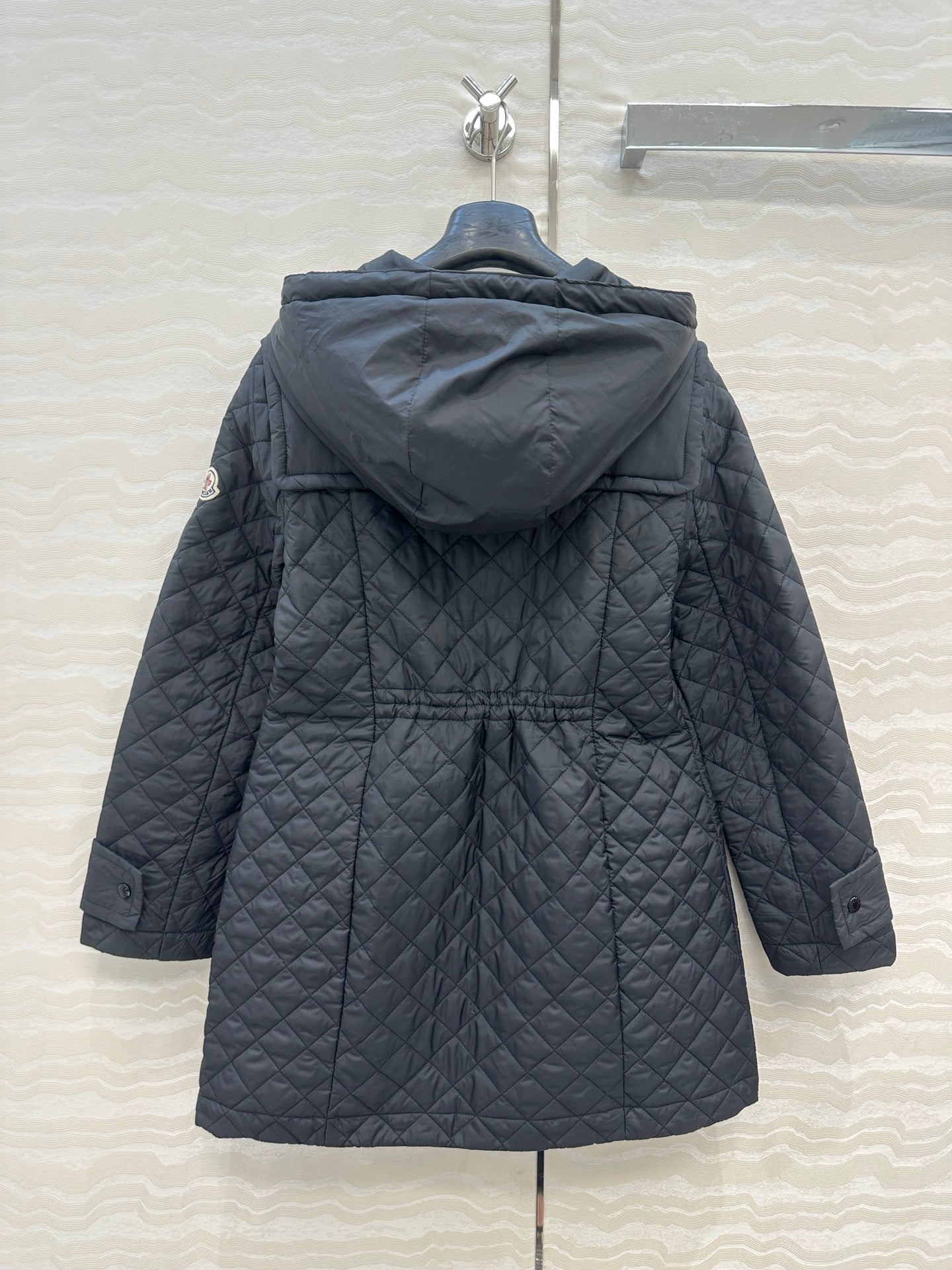Moncler 25 Quilted Long Coat Black Polyester