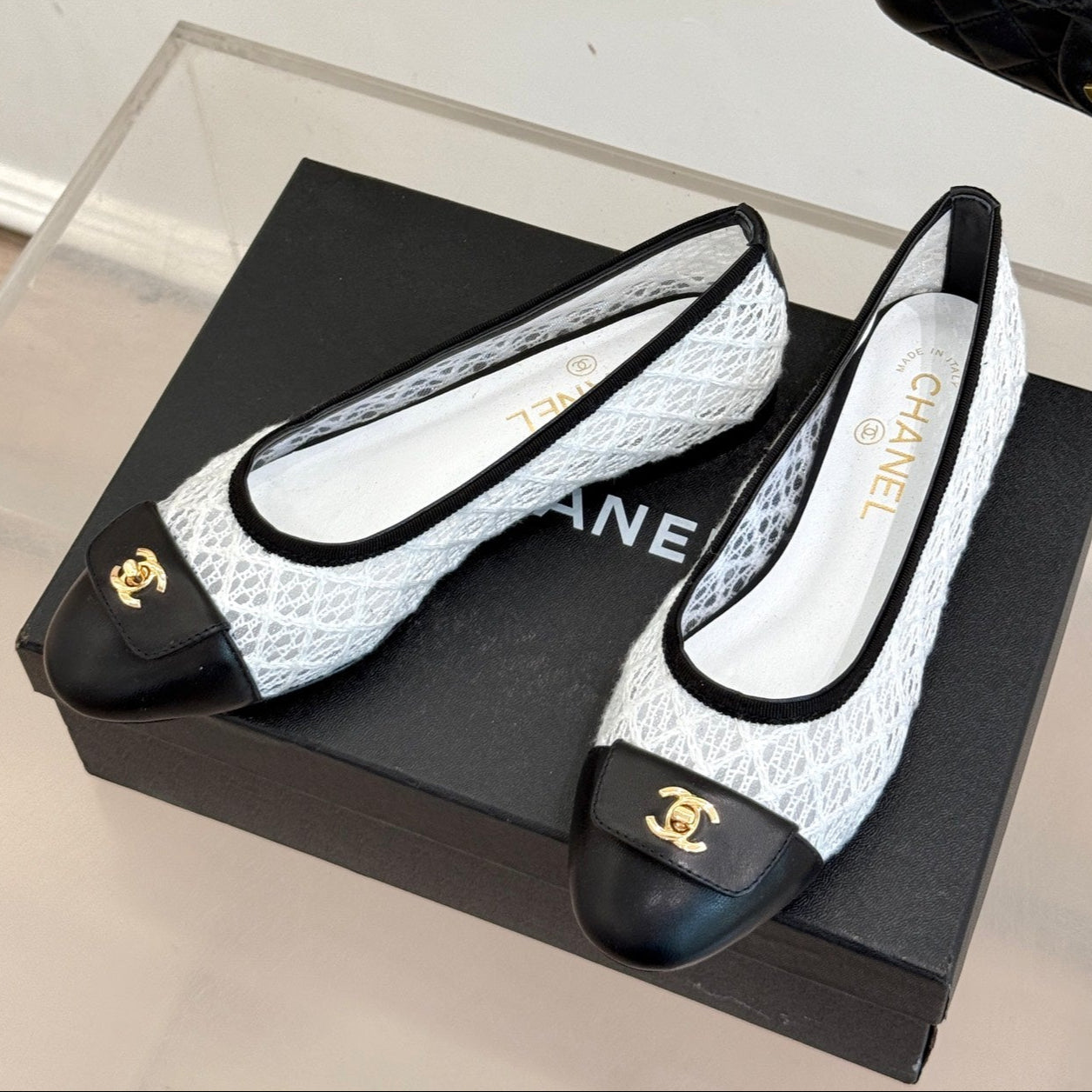 Chanel 25 Ballet Flat White Black Woven Lambskin 473057