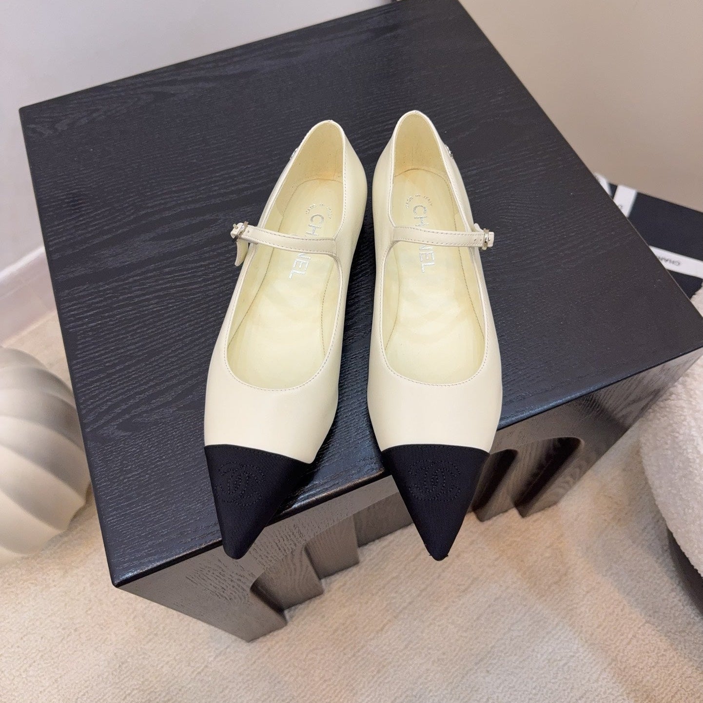 Chanel 25 Bowknot Ballet Flat White Black Sheepskin 473065