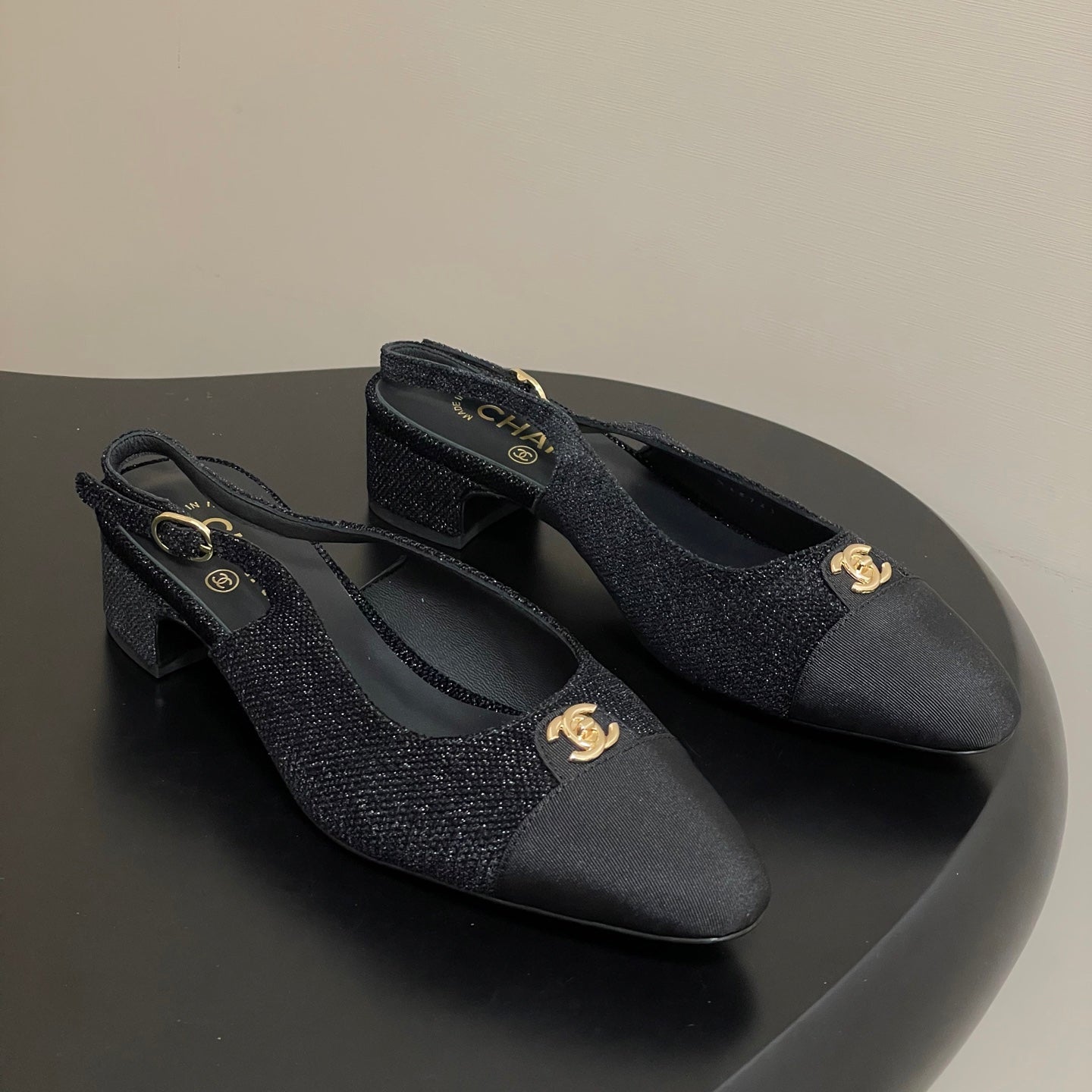 Chanel 25 Slingback Black Lambskin Fabric 473212