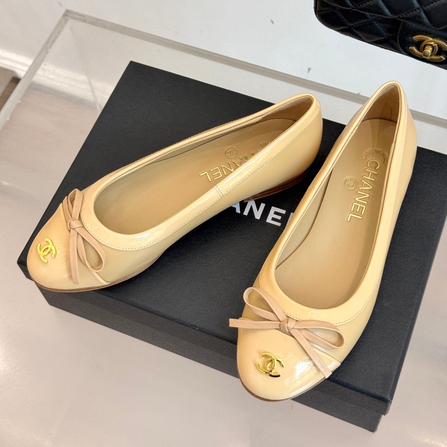 Chanel 25 Bowknot Ballet Flat Beige Sheepskin 473066