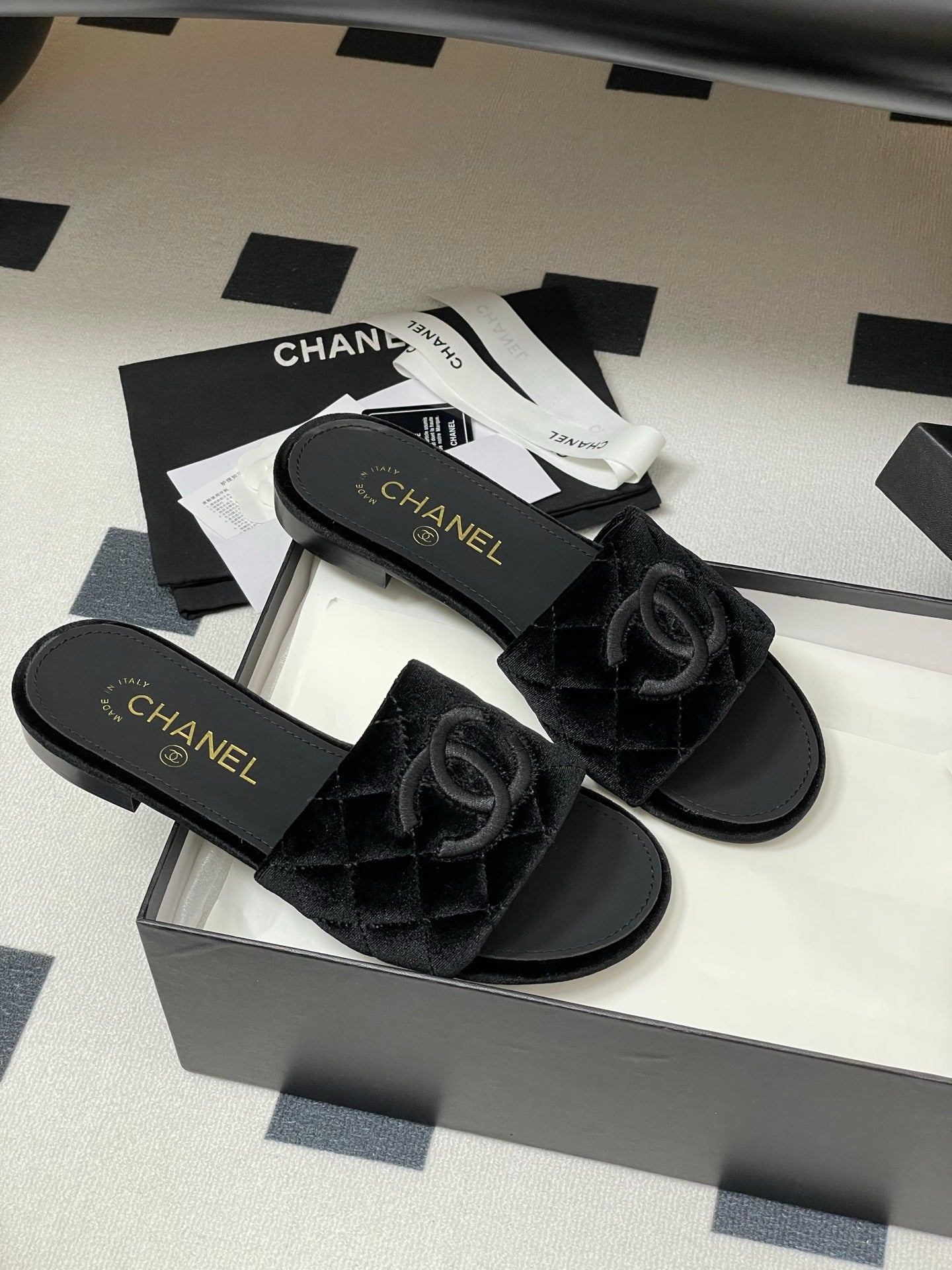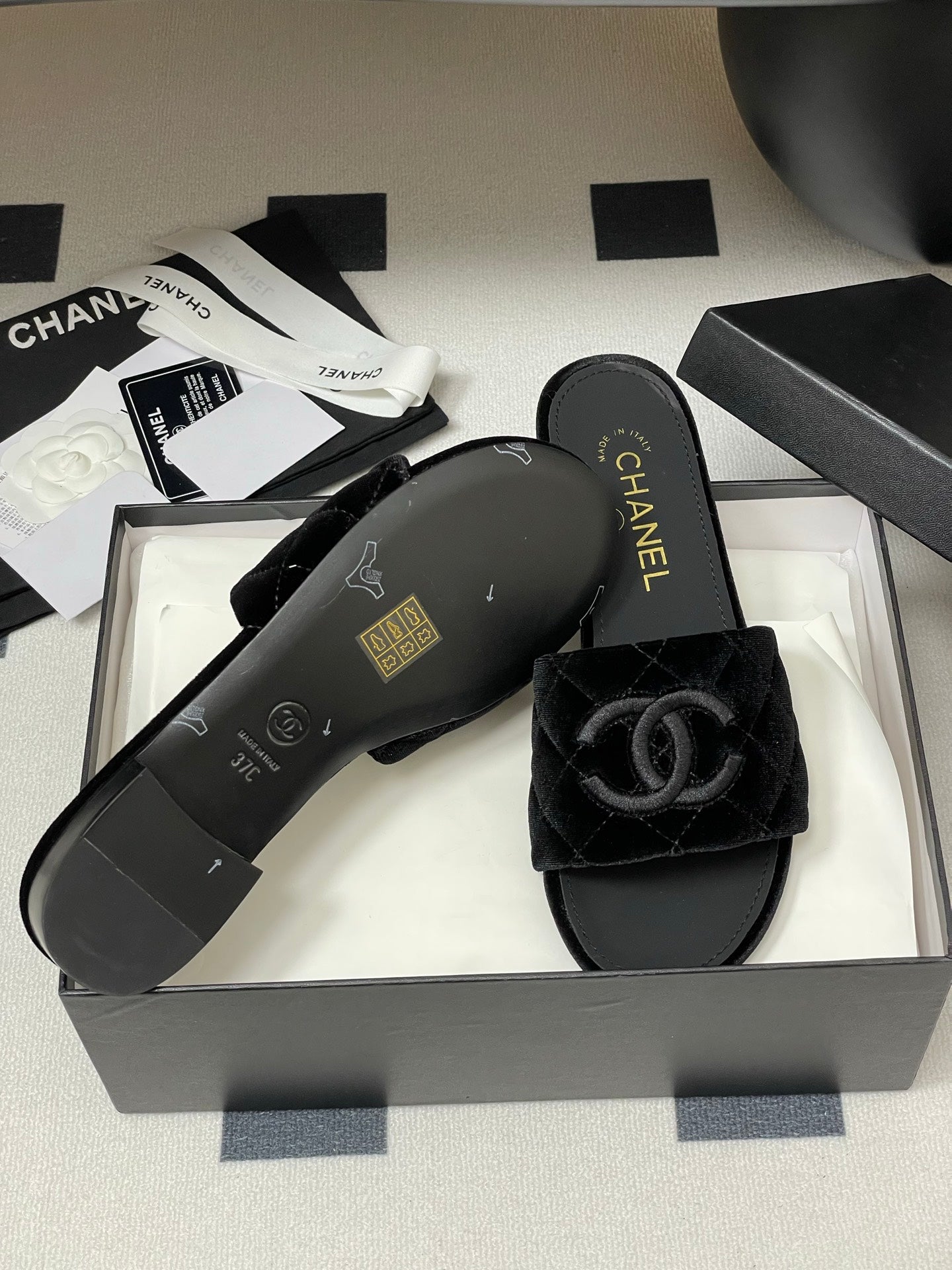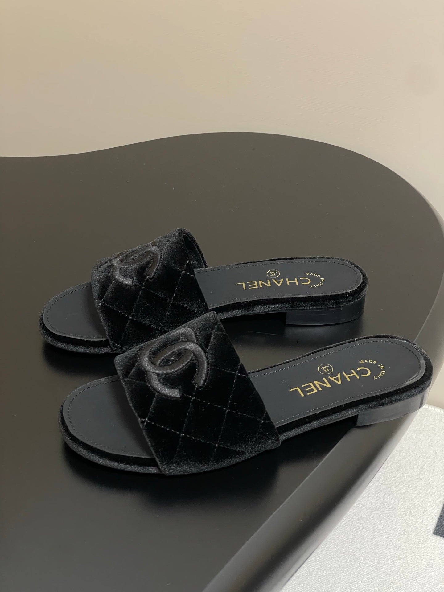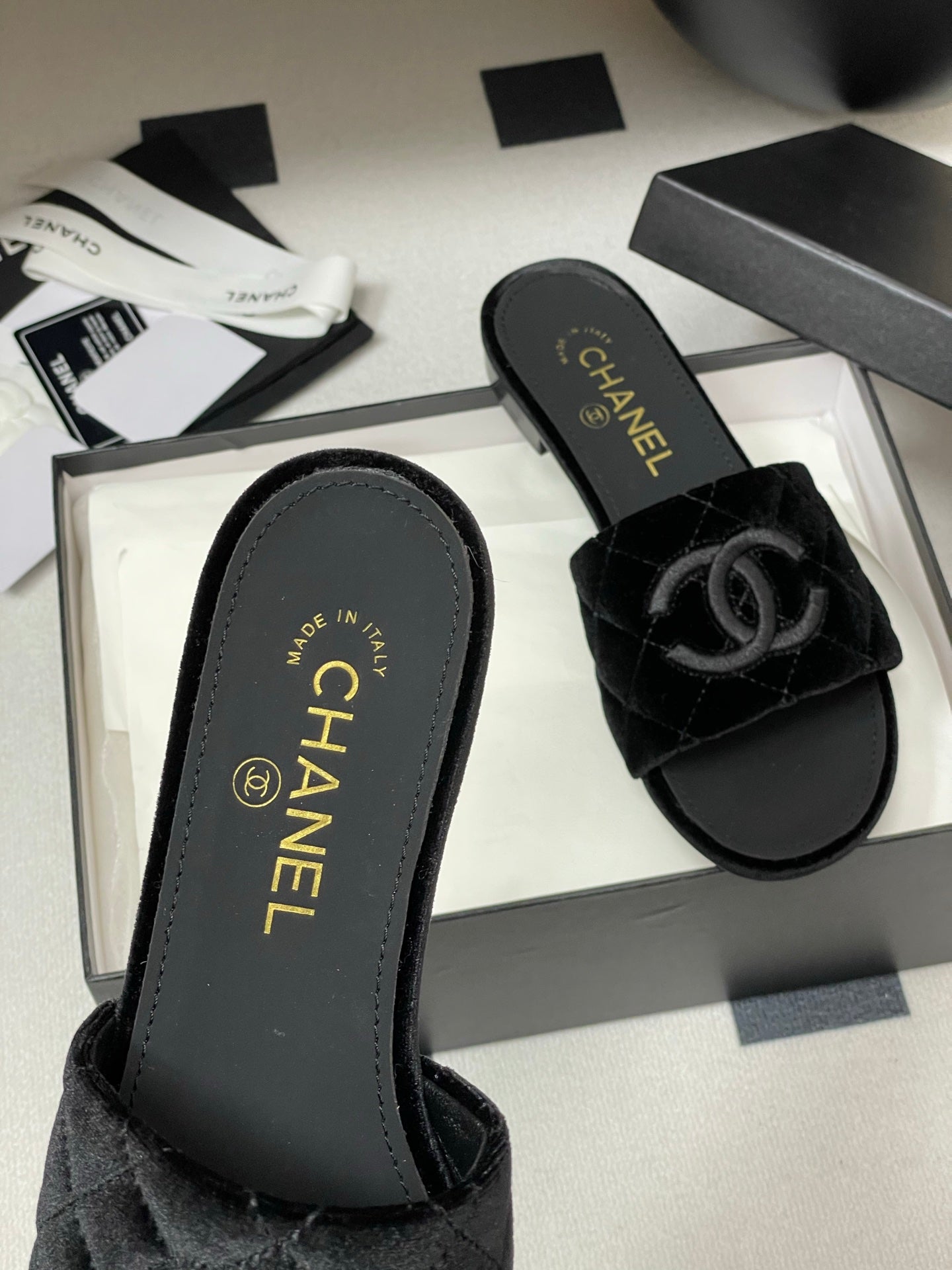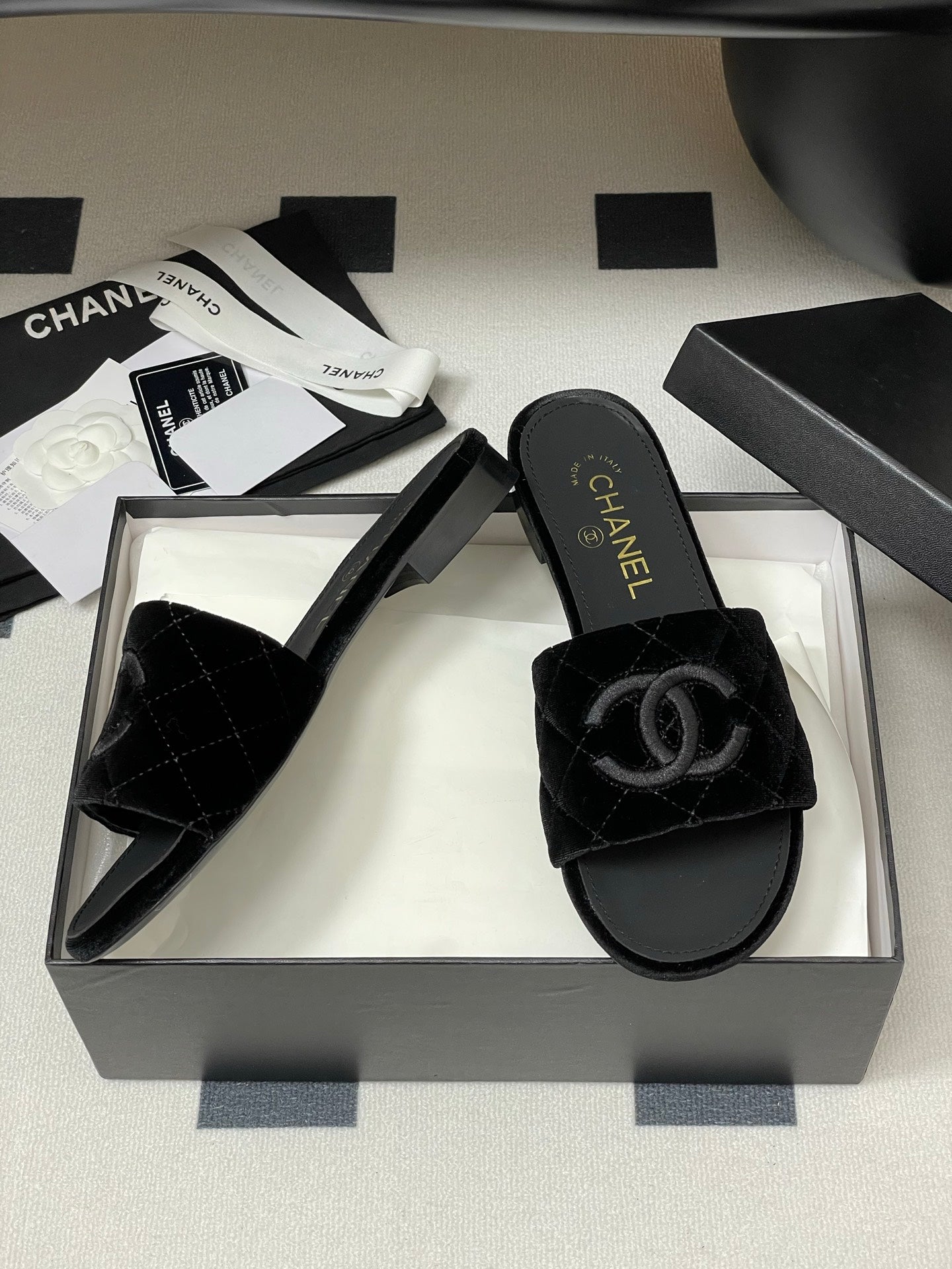 25S Embroidery Double C Mule 15mm Black Velvet 247580