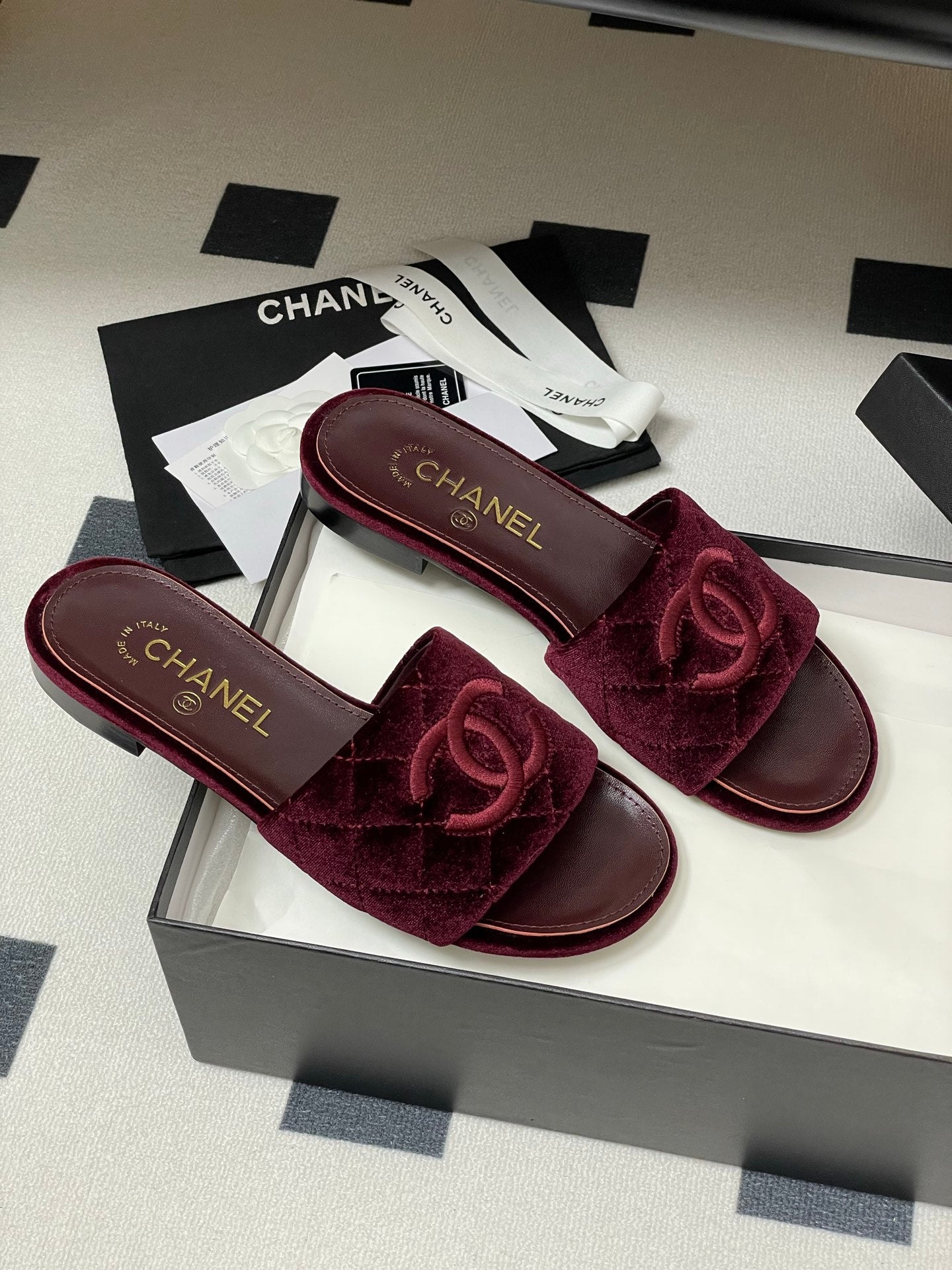 25S Embroidery Double C Mule 15mm Wine Velvet 247579