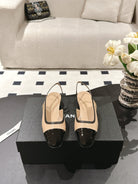 cc 2024k slingback 30mm beige black pattern calfskin 237499