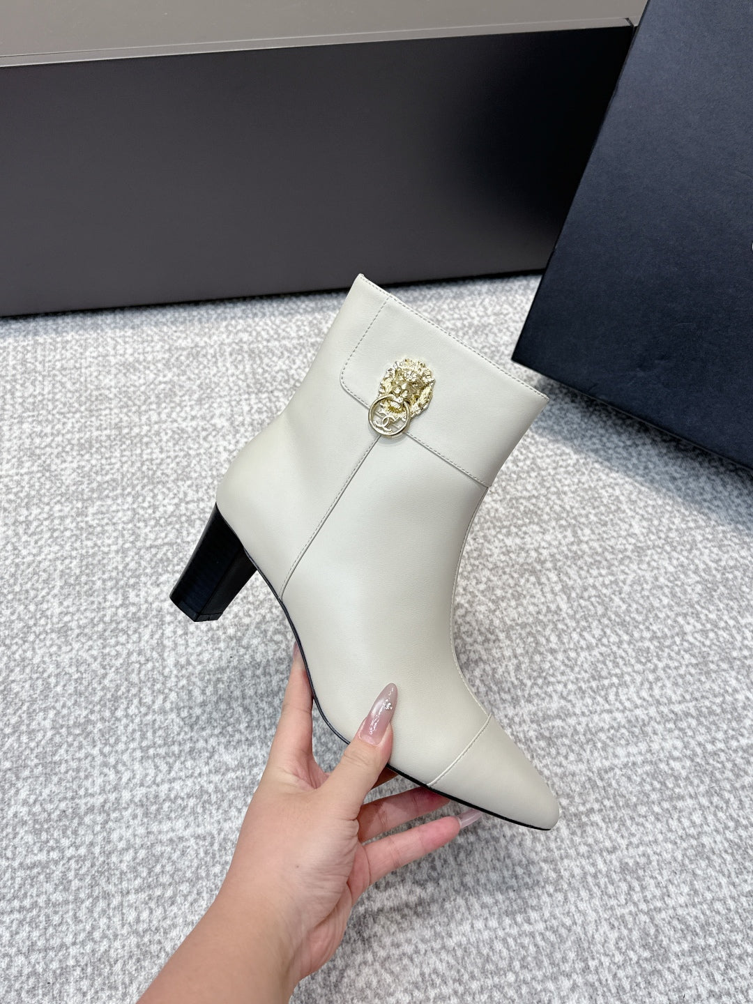CC 2025s Lion Pointed Toe Ankle Boots 50mm White Sheepskin 461624