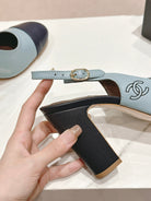 CC 24P SLINGBACKS 95MM TURQUOISE BLACK LAMBSKIN