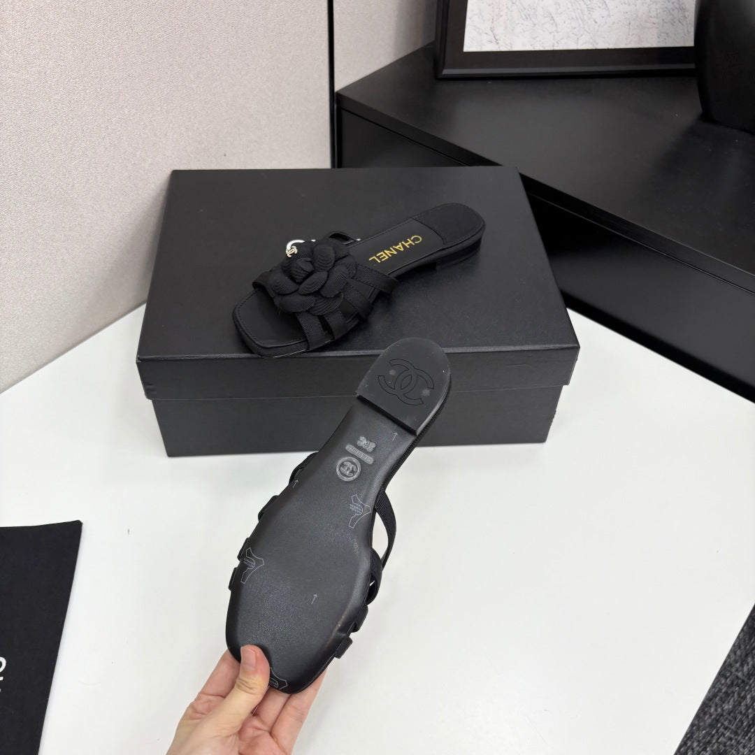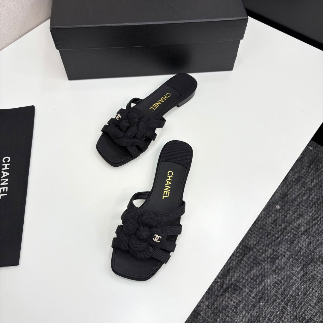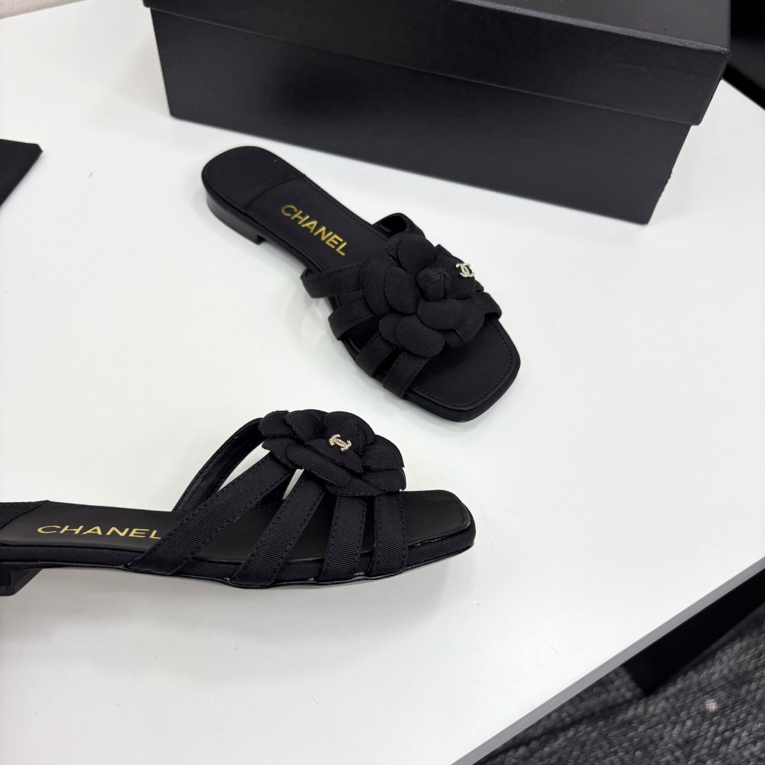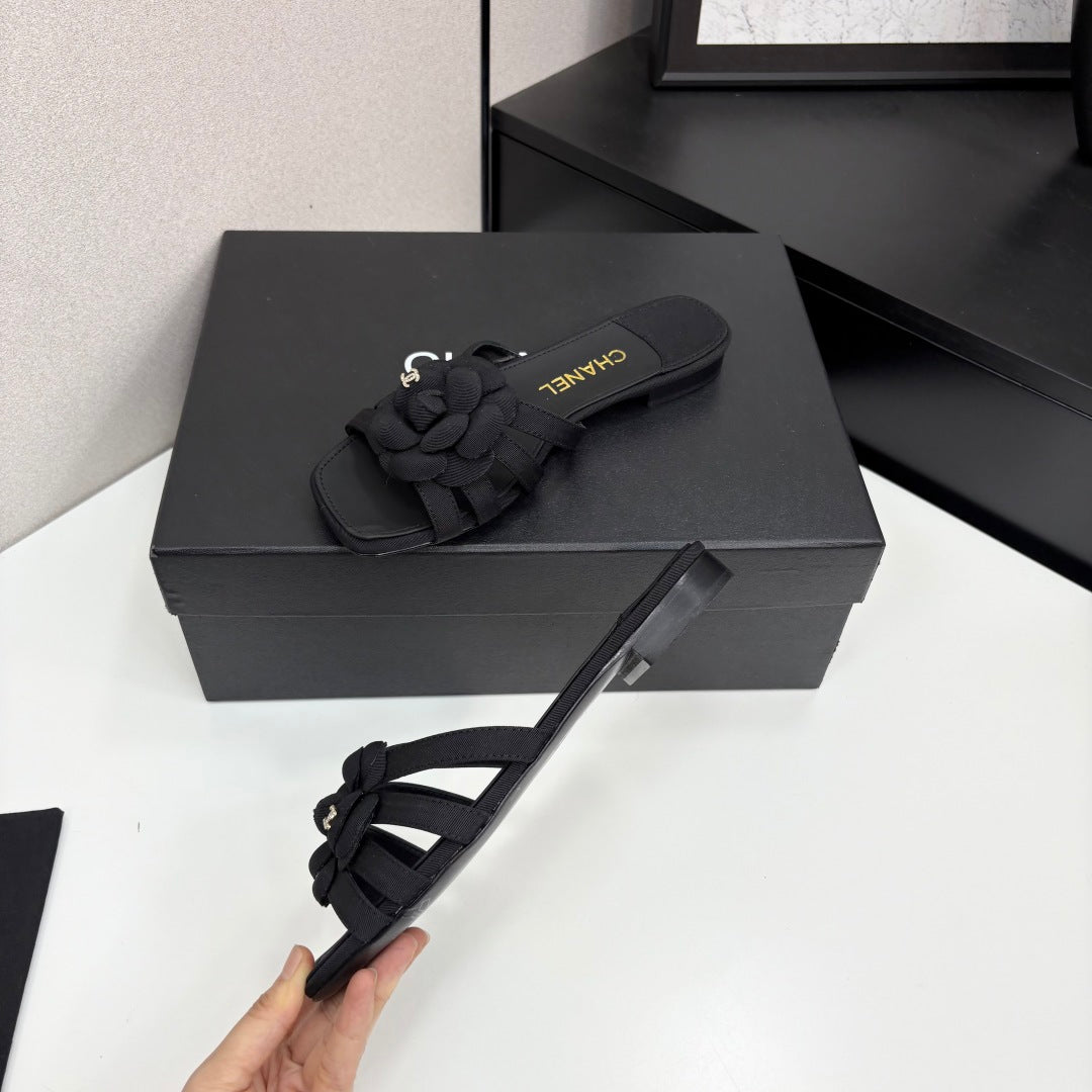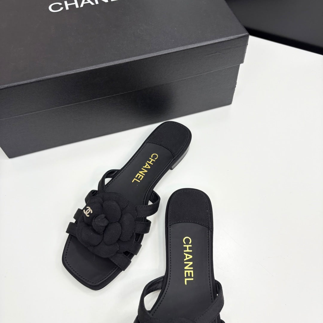 CC 25 Camellia Open Flat Mule Black Sheepskin And Fabric 368850