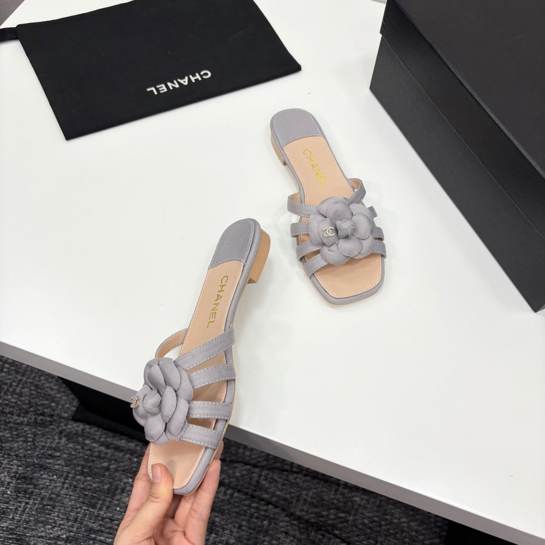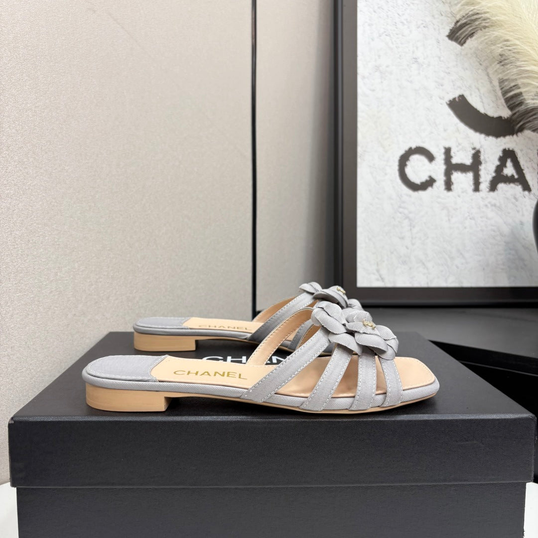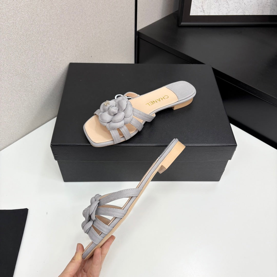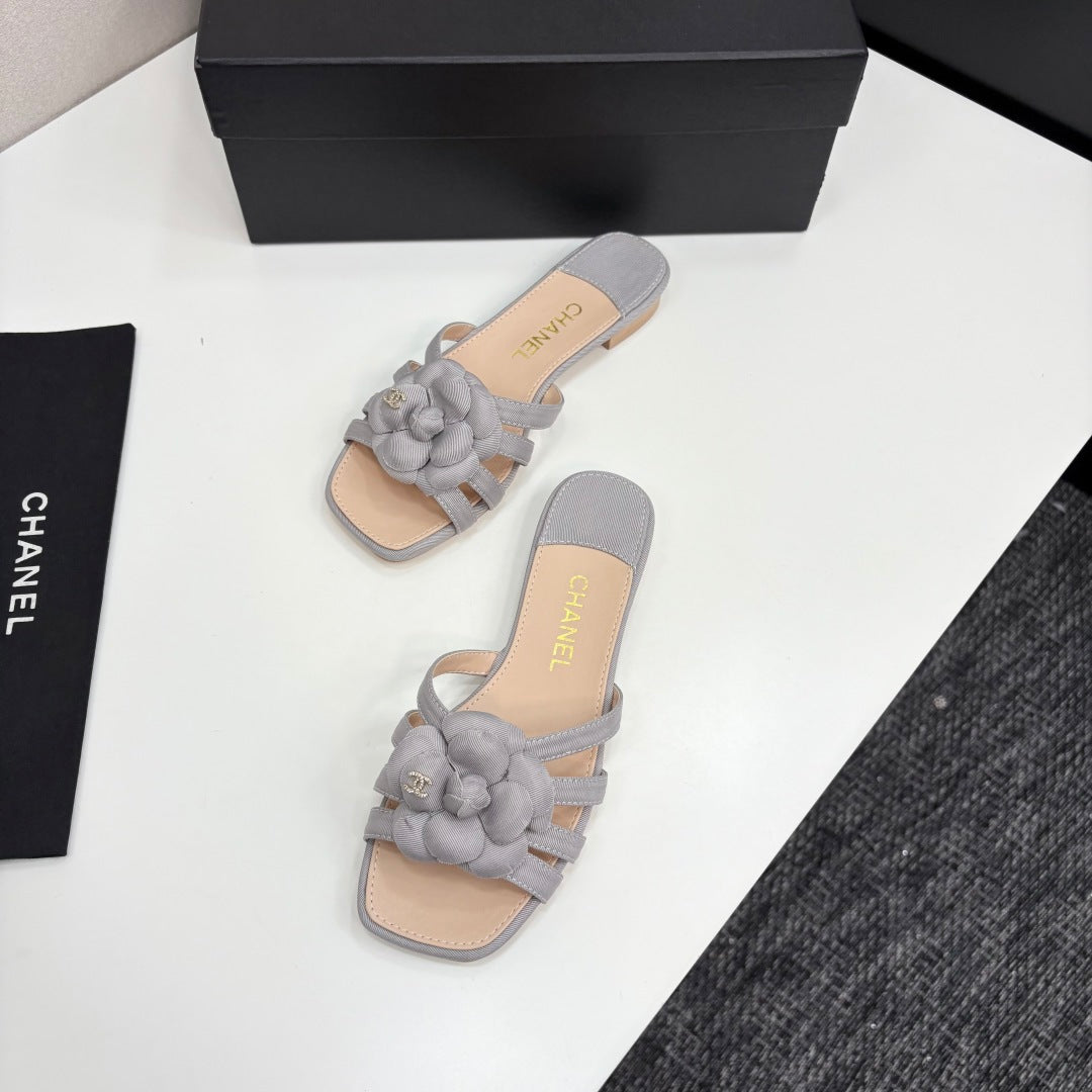 CC 25 Camellia Open Flat Mule Grey Beige Sheepskin And Fabric 368848