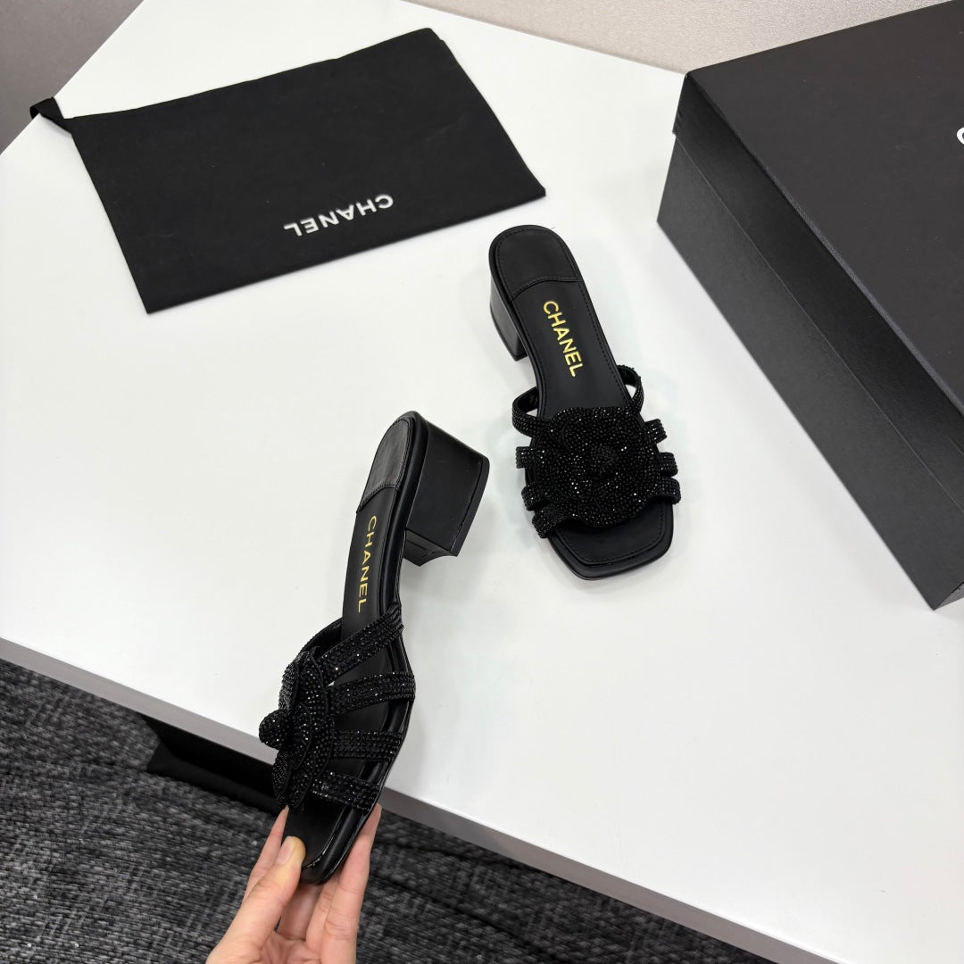 CC 25 Camellia Open Heel Mule Sandals 50mm Black Stone Grain And Sheepskin 368860