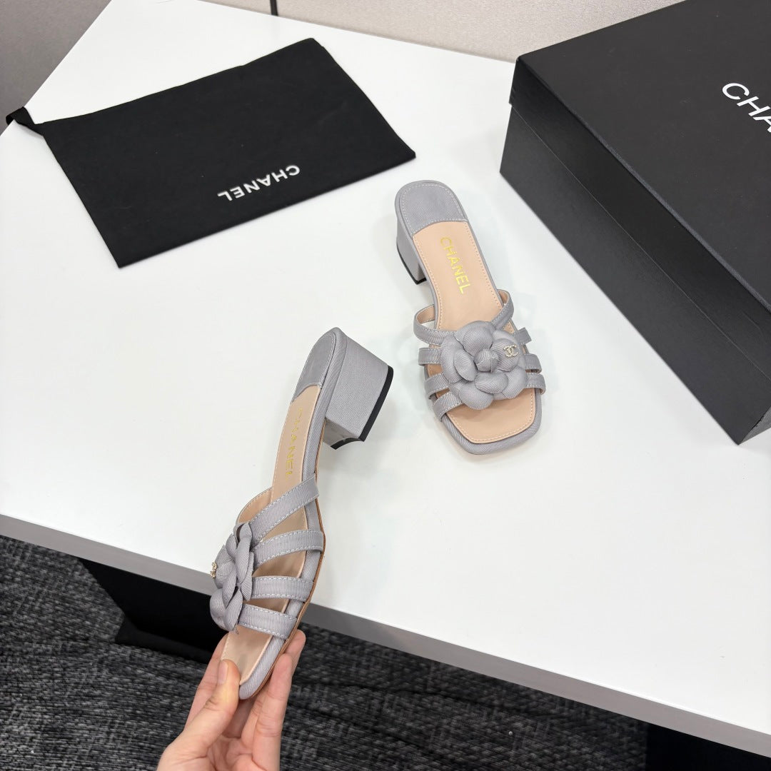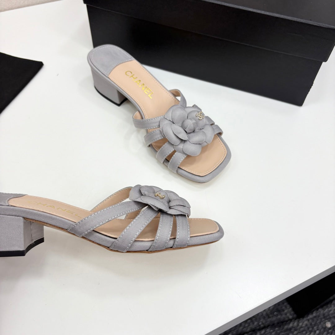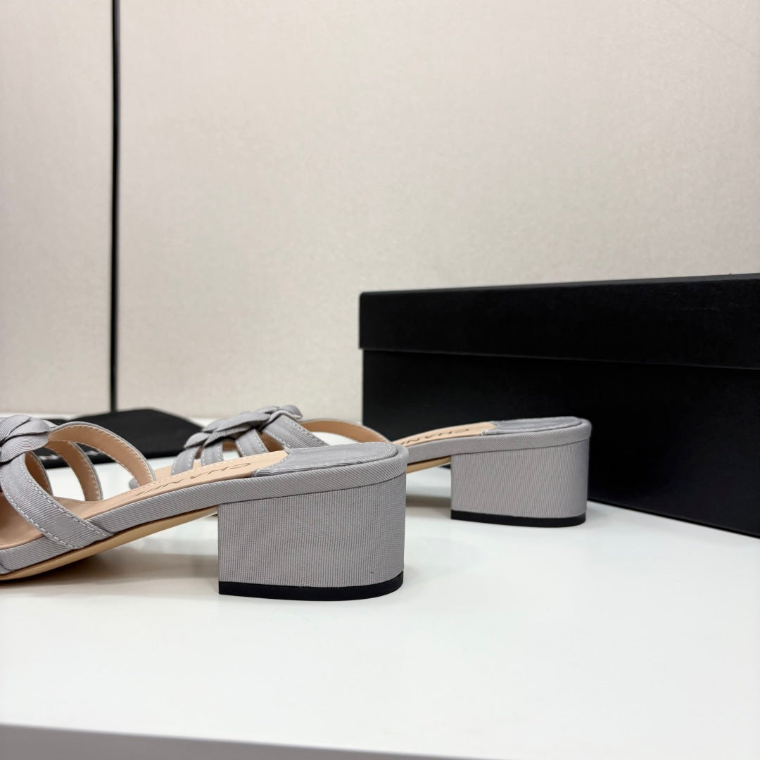 CC 25 Camellia Open Heel Mule Sandals 50mm Grey Beige Sheepskin And Fabric 368854