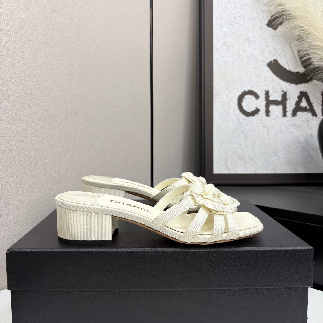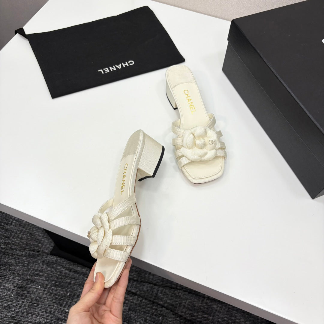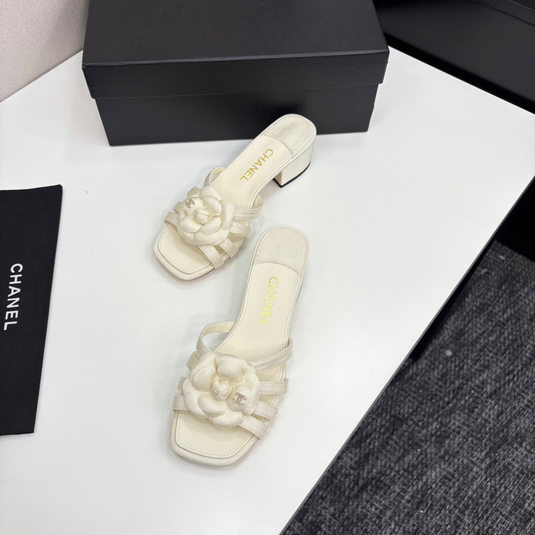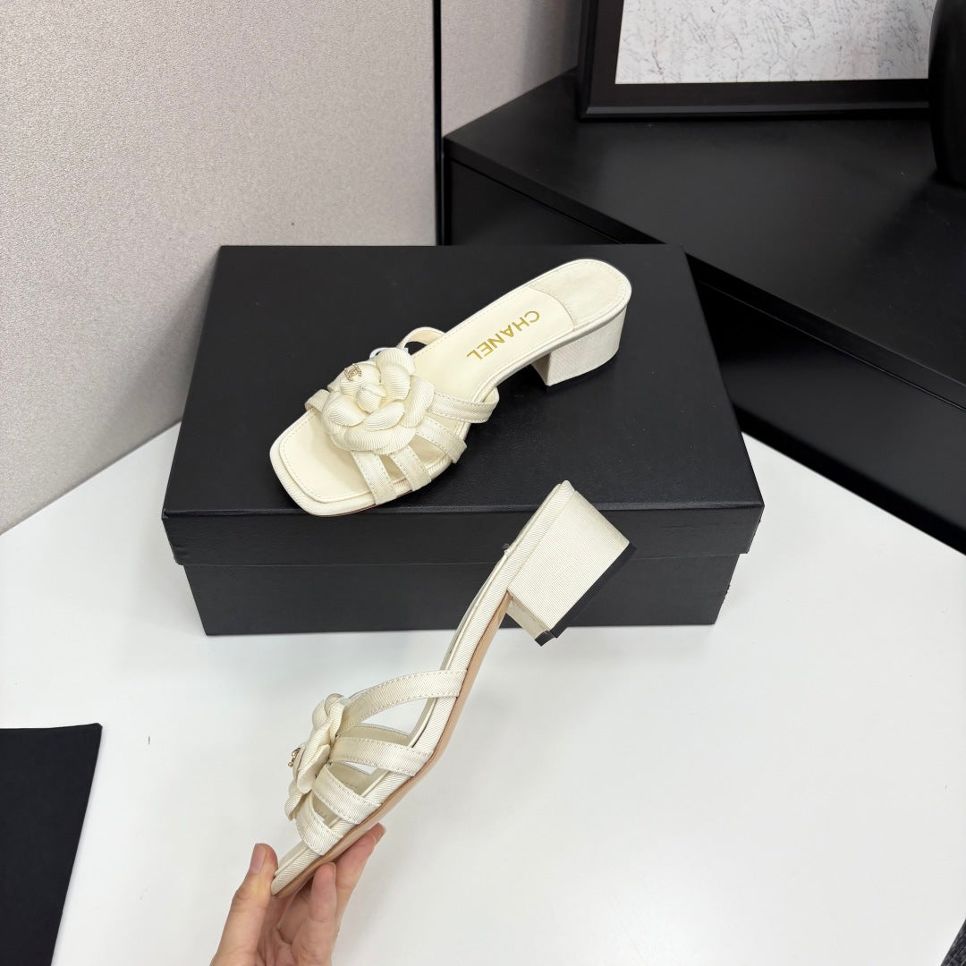 CC 25 Camellia Open Heel Mule Sandals 50mm Ivory Sheepskin And Fabric 368857