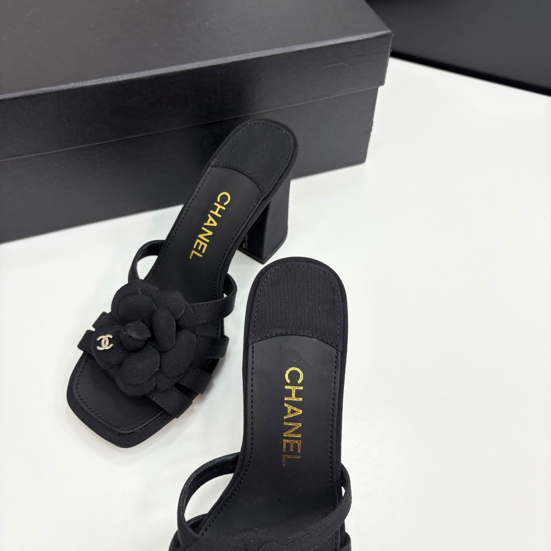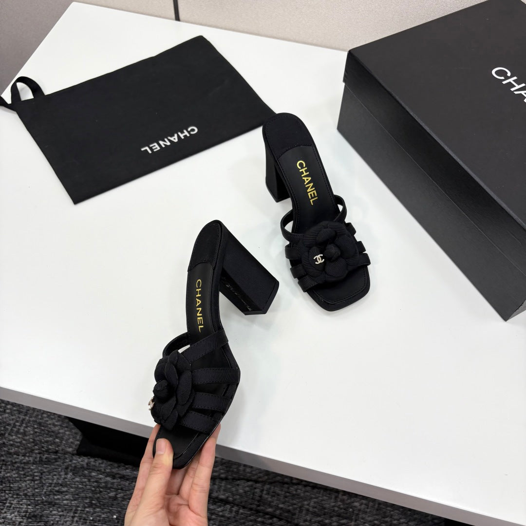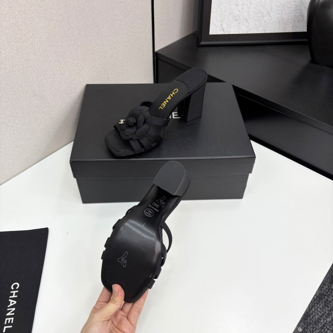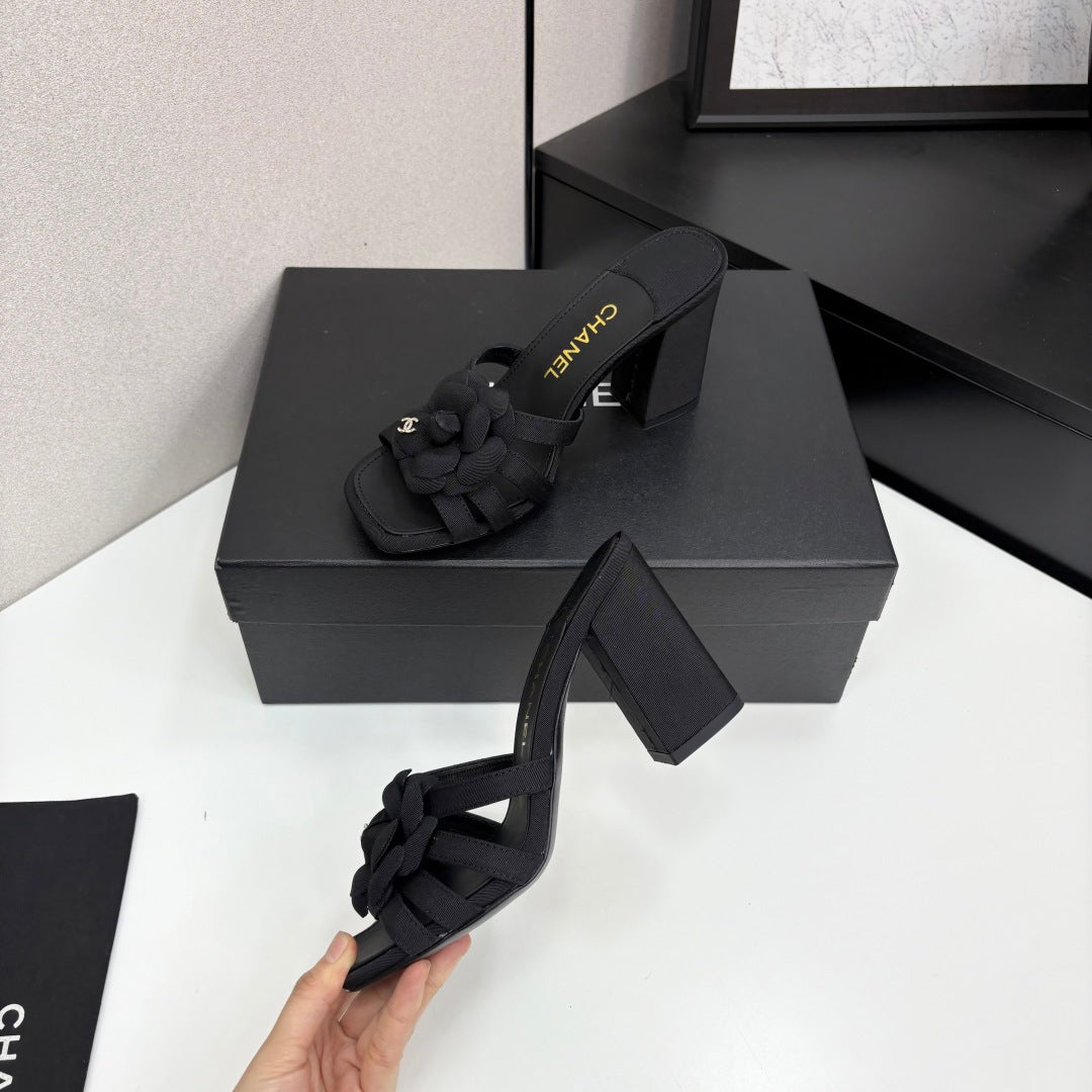 CC 25 Camellia Open Heel Mule Sandals 90mm Black Sheepskin And Fabric 368841