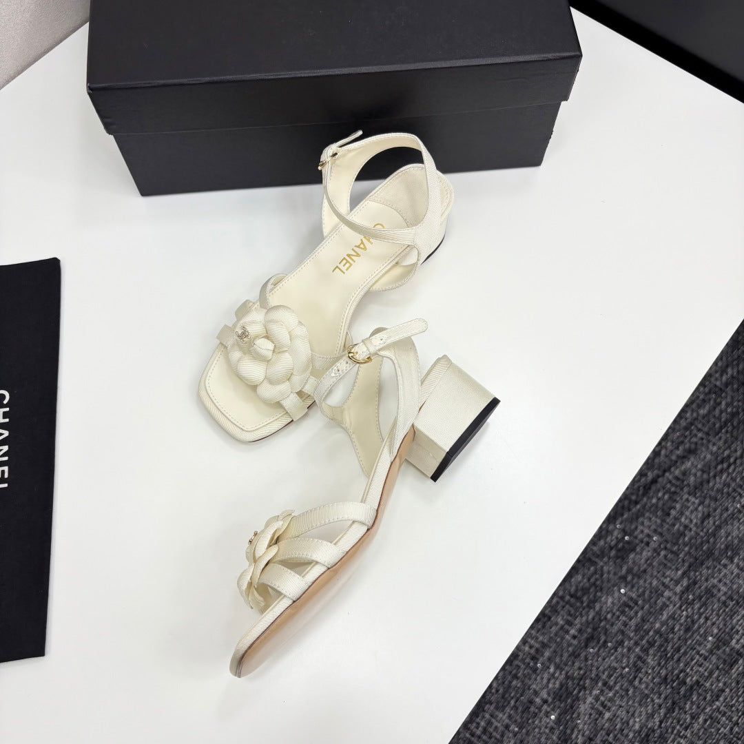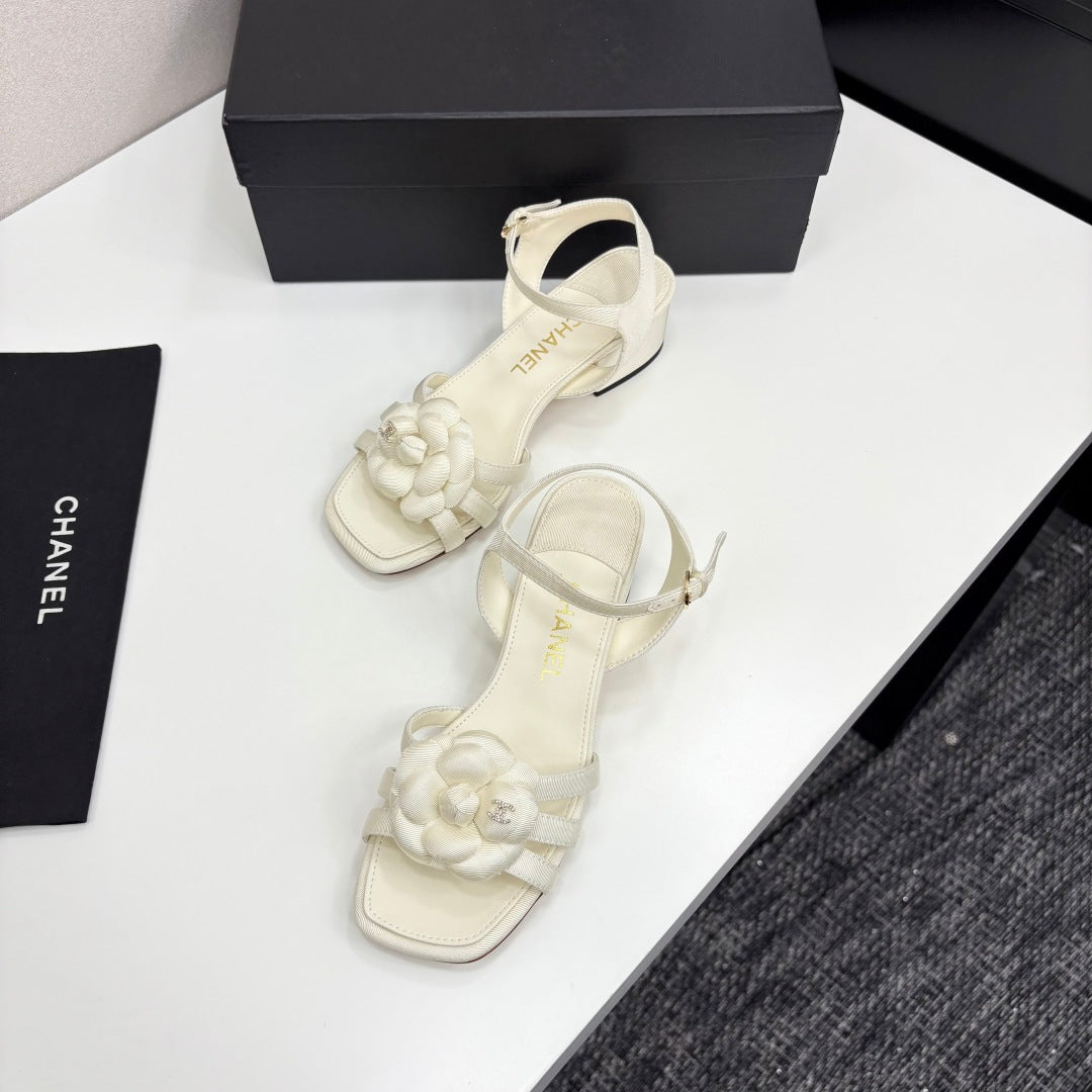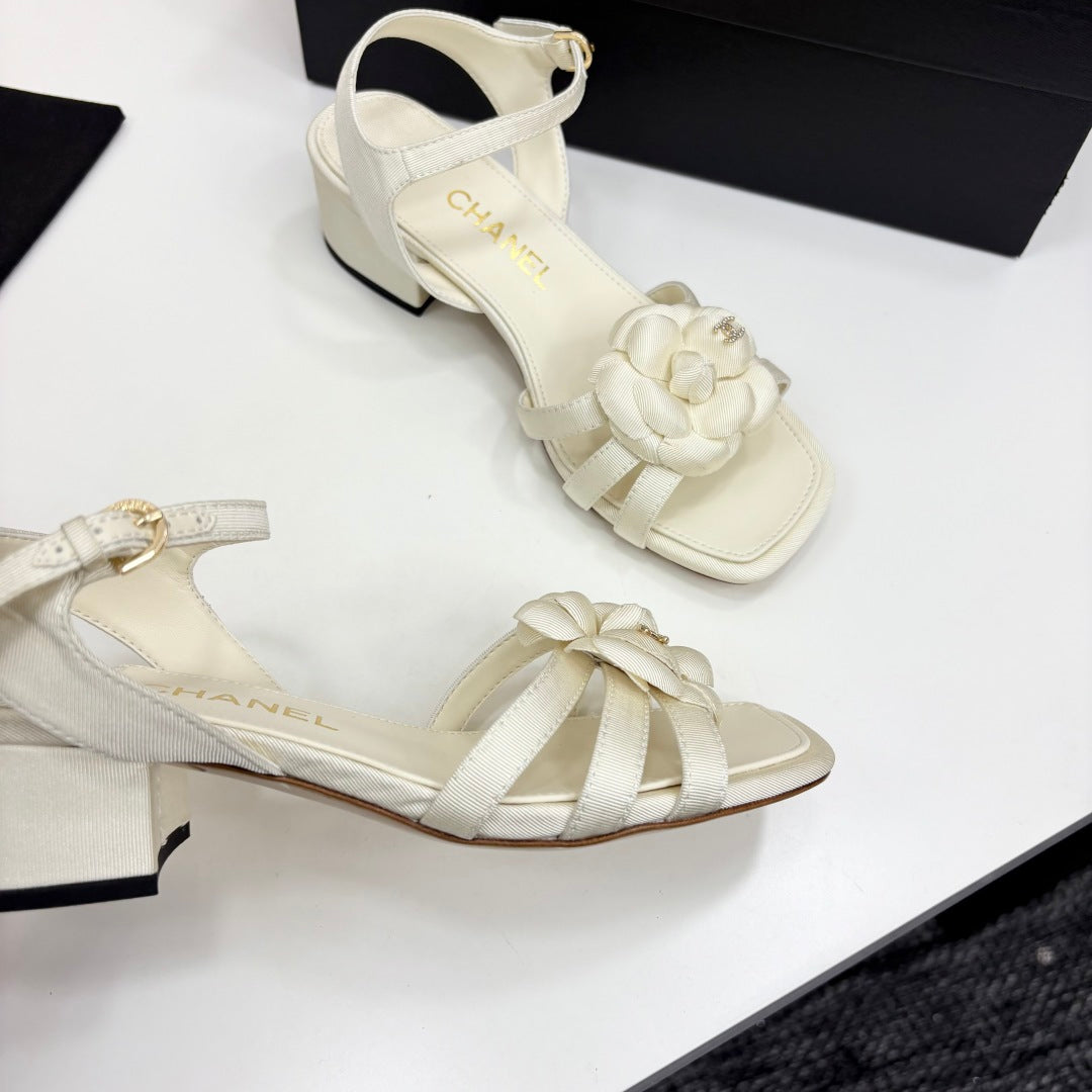 CC 25 Camellia Open Heel Sandals 50mm Ivory Sheepskin And Fabric 368812