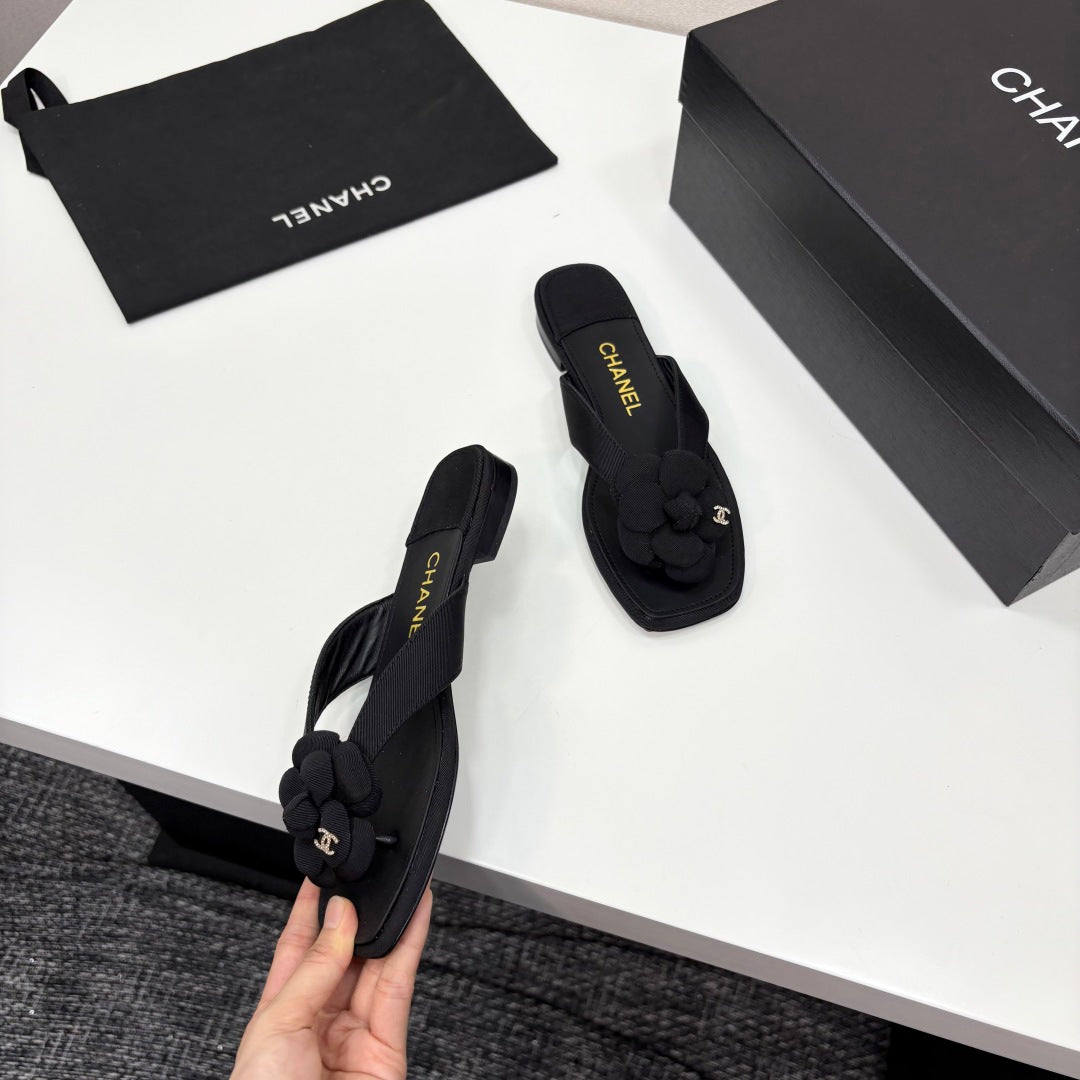 CC 25 Camellia Thong Sandals Black Sheepskin And Fabric 368838