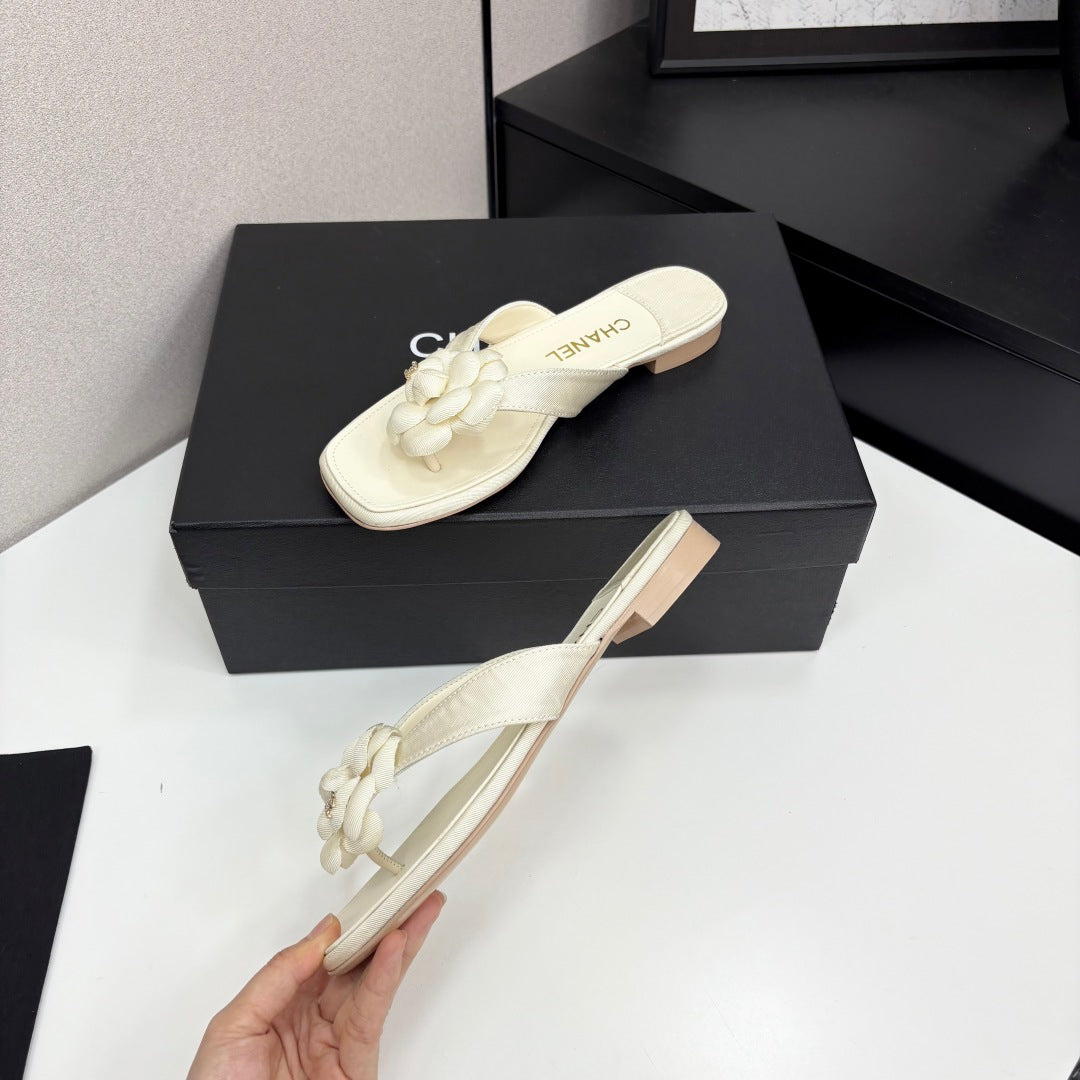 CC 25 Camellia Thong Sandals Ivory Sheepskin And Fabric 368836