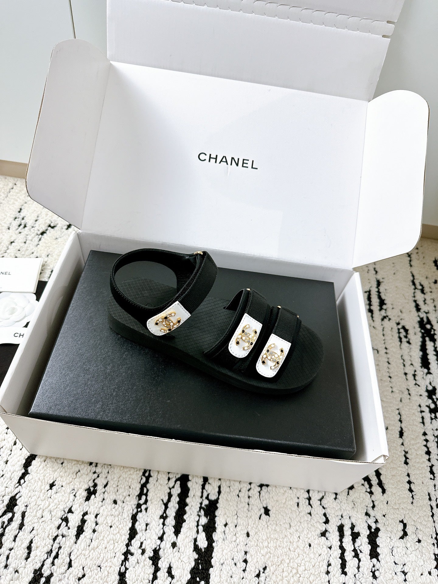 CC 25 Dad Sandals Black White Fabric Leather 300168