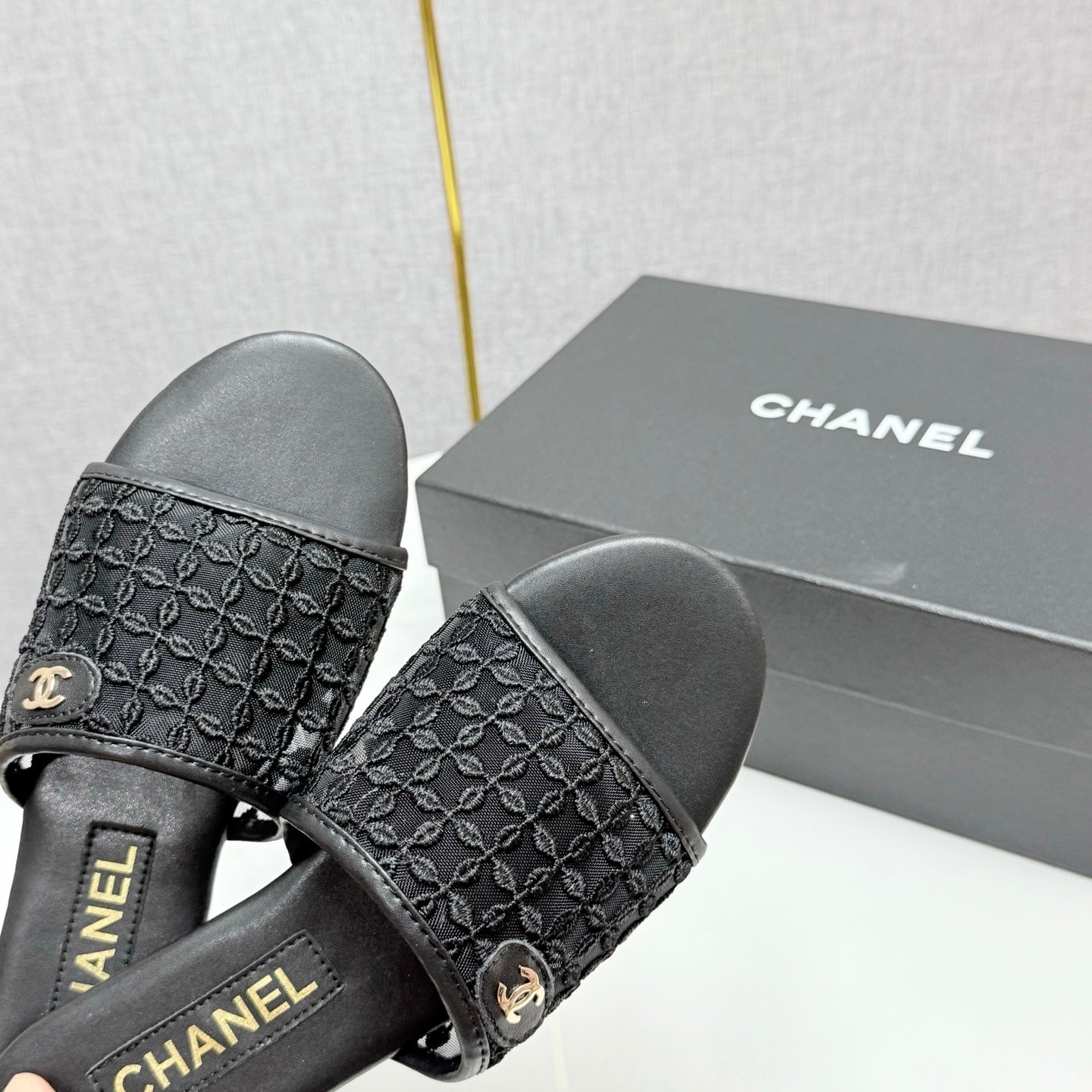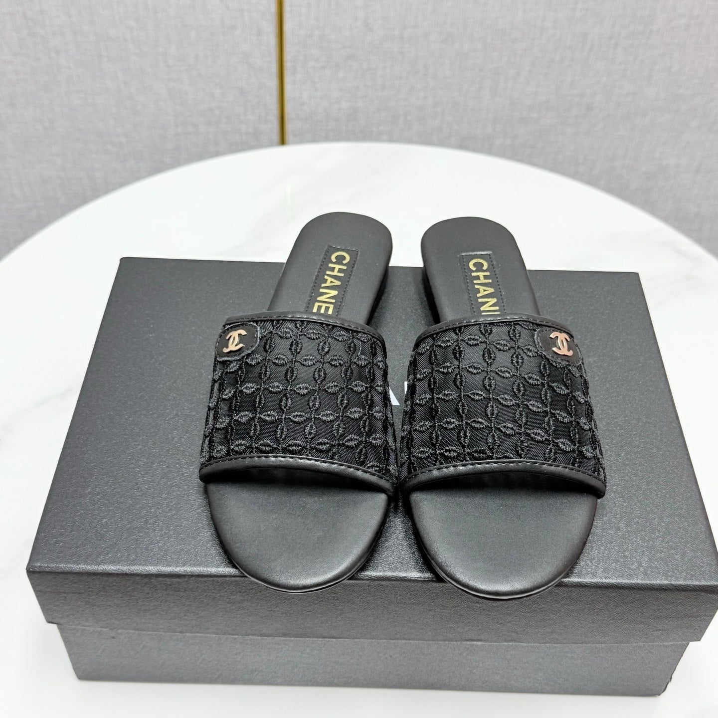 CC 25 Flat Mule Sandals Black Mesh And Sheepskin 368806
