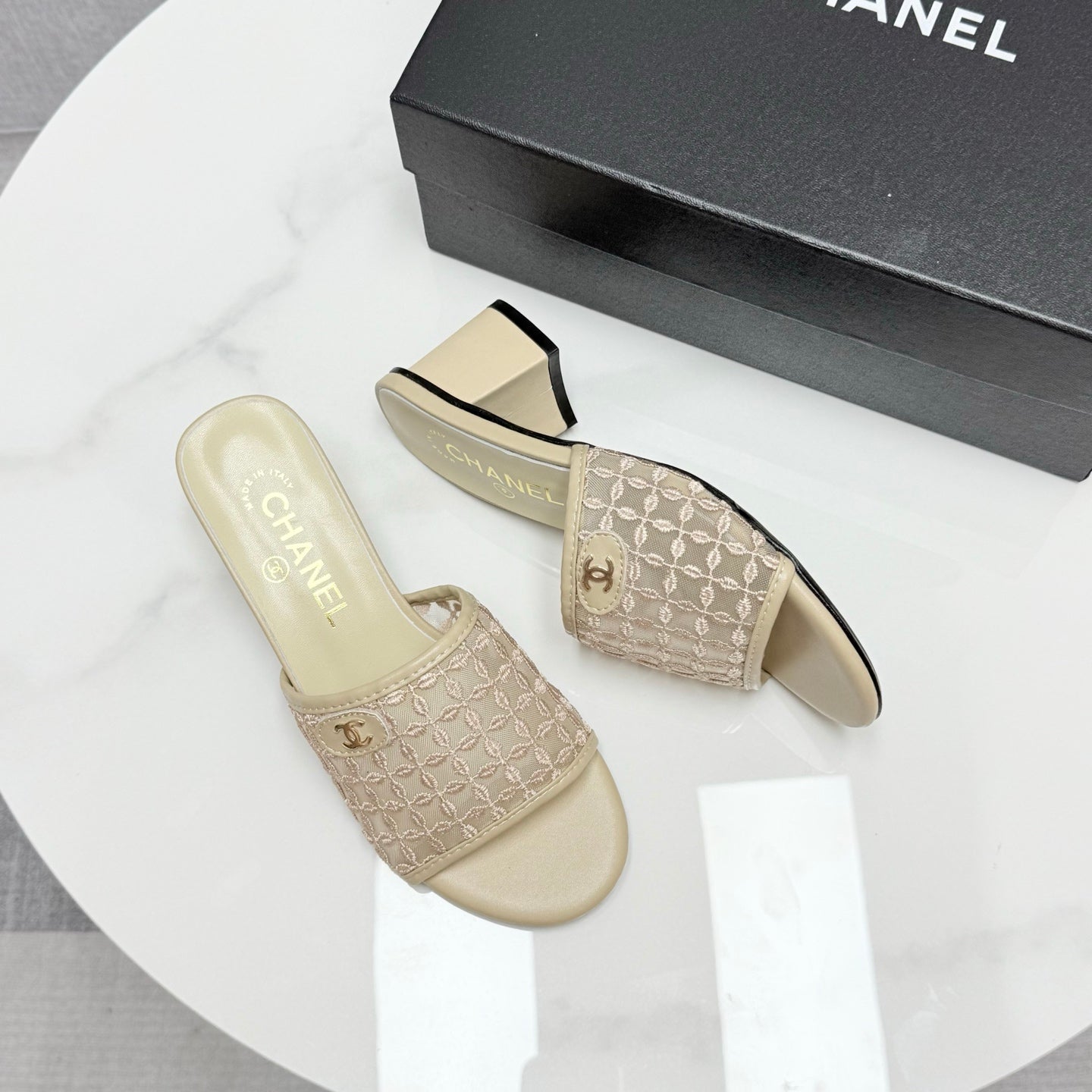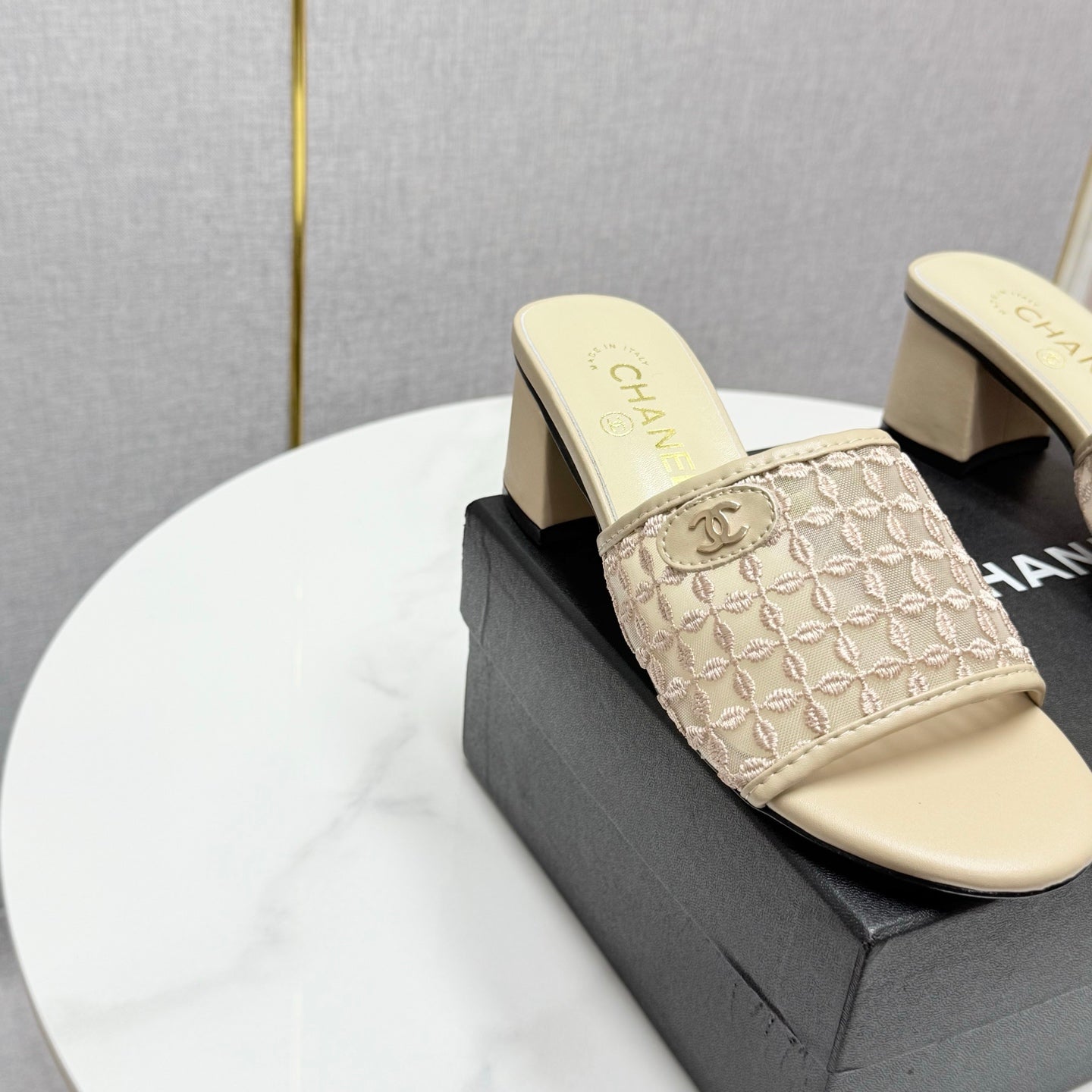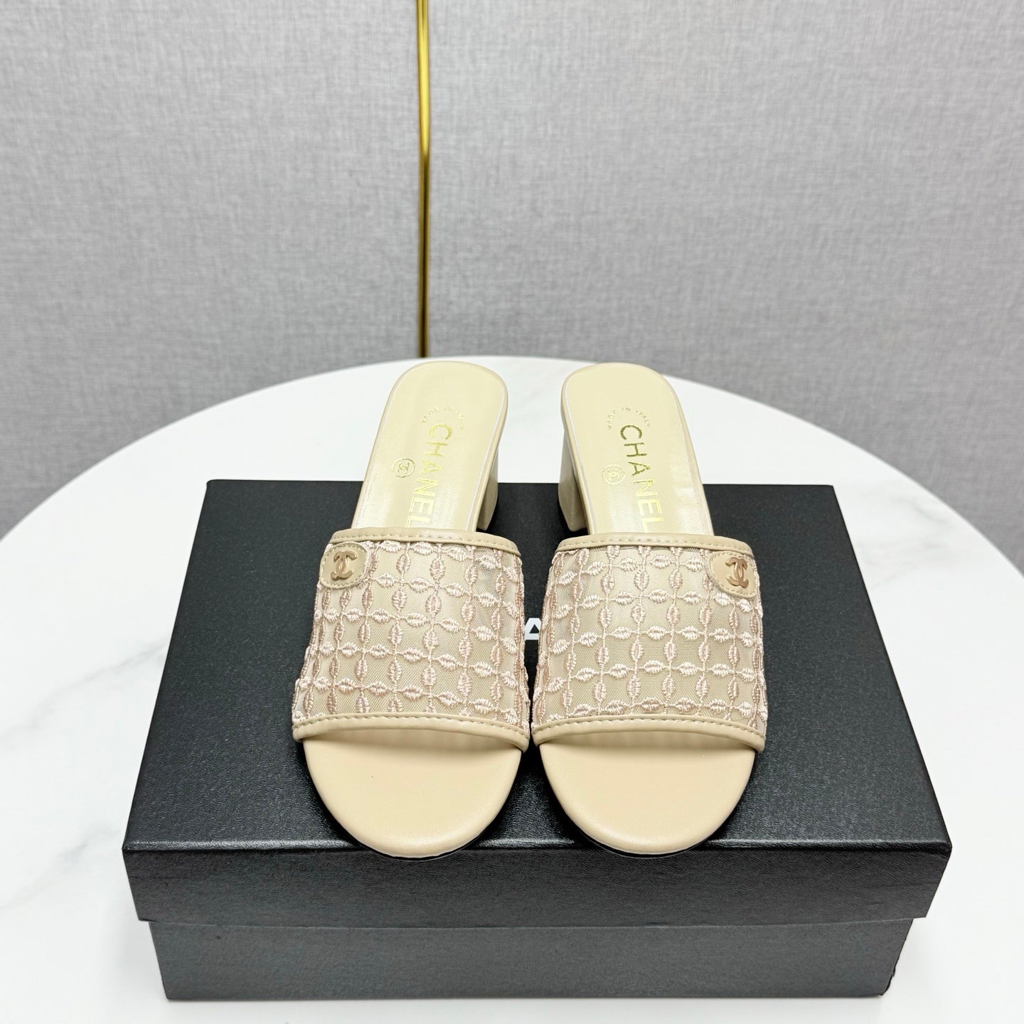 CC 25 Heel Sandals 50m Beige Mesh And Sheepskin 368803