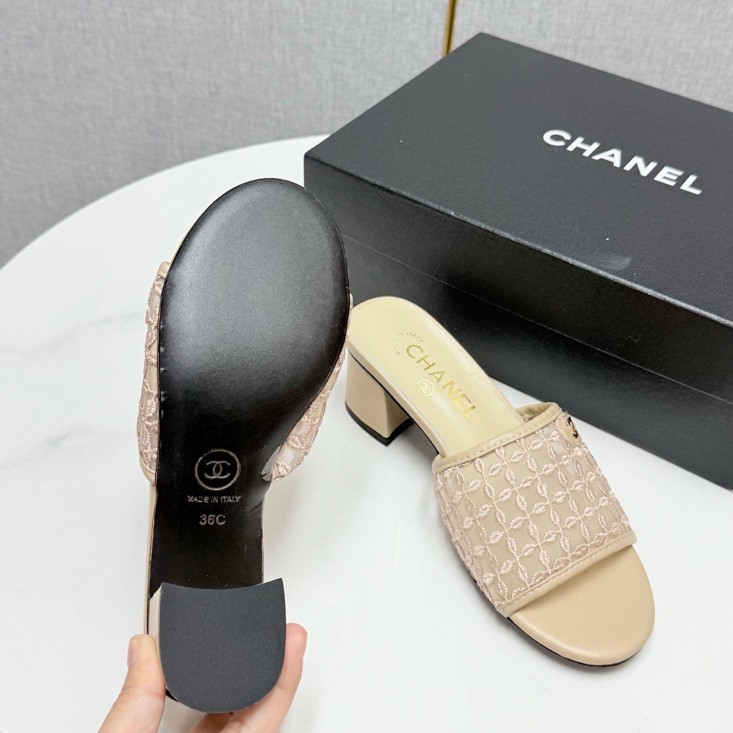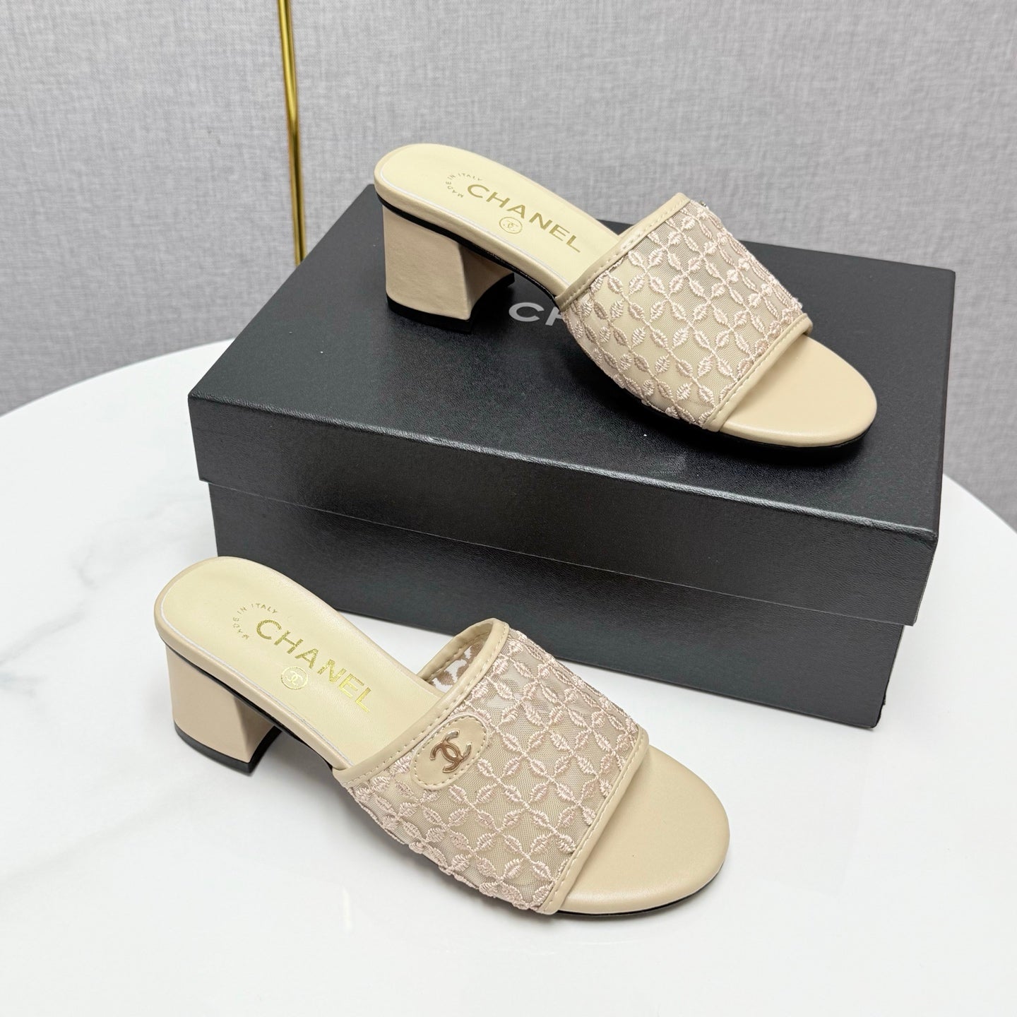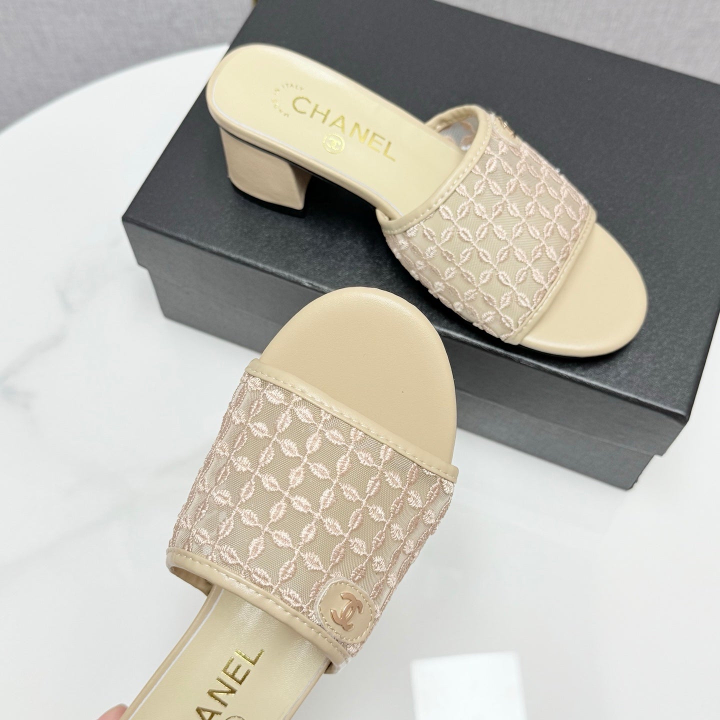 CC 25 Heel Sandals 50m Beige Mesh And Sheepskin 368803