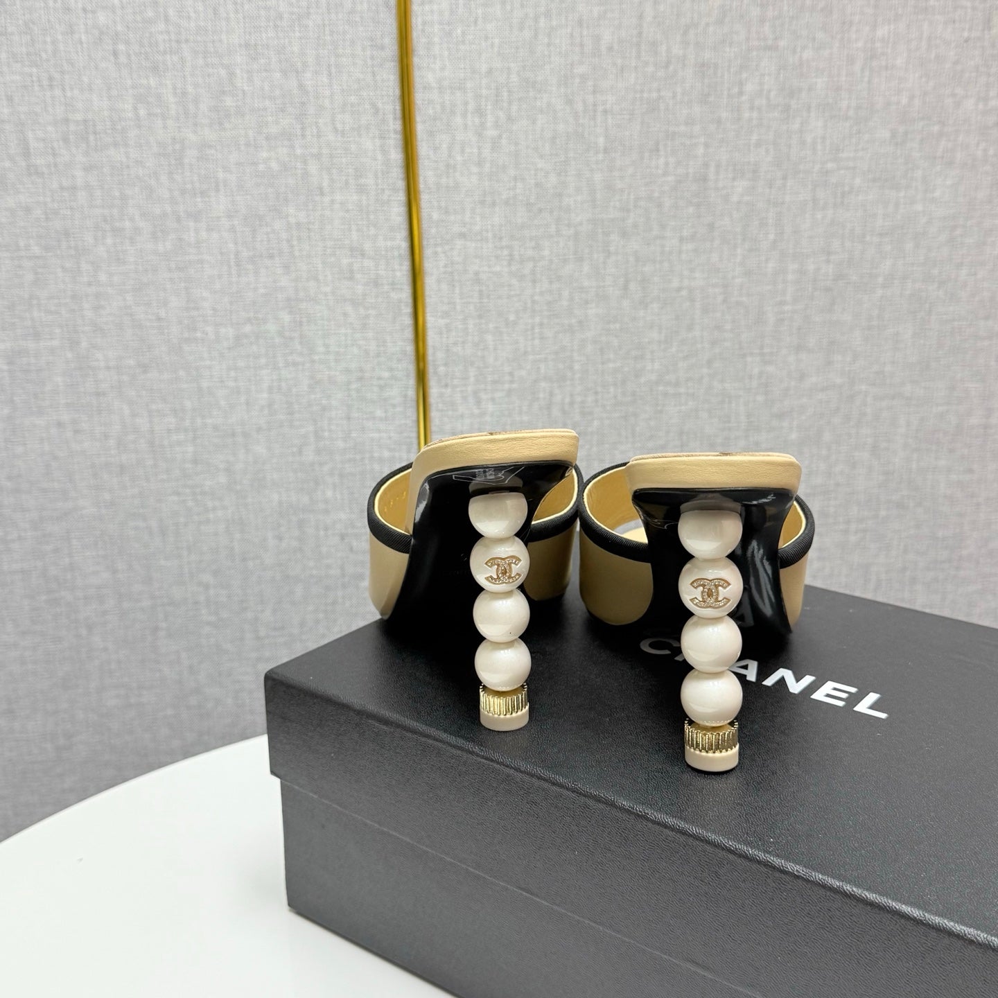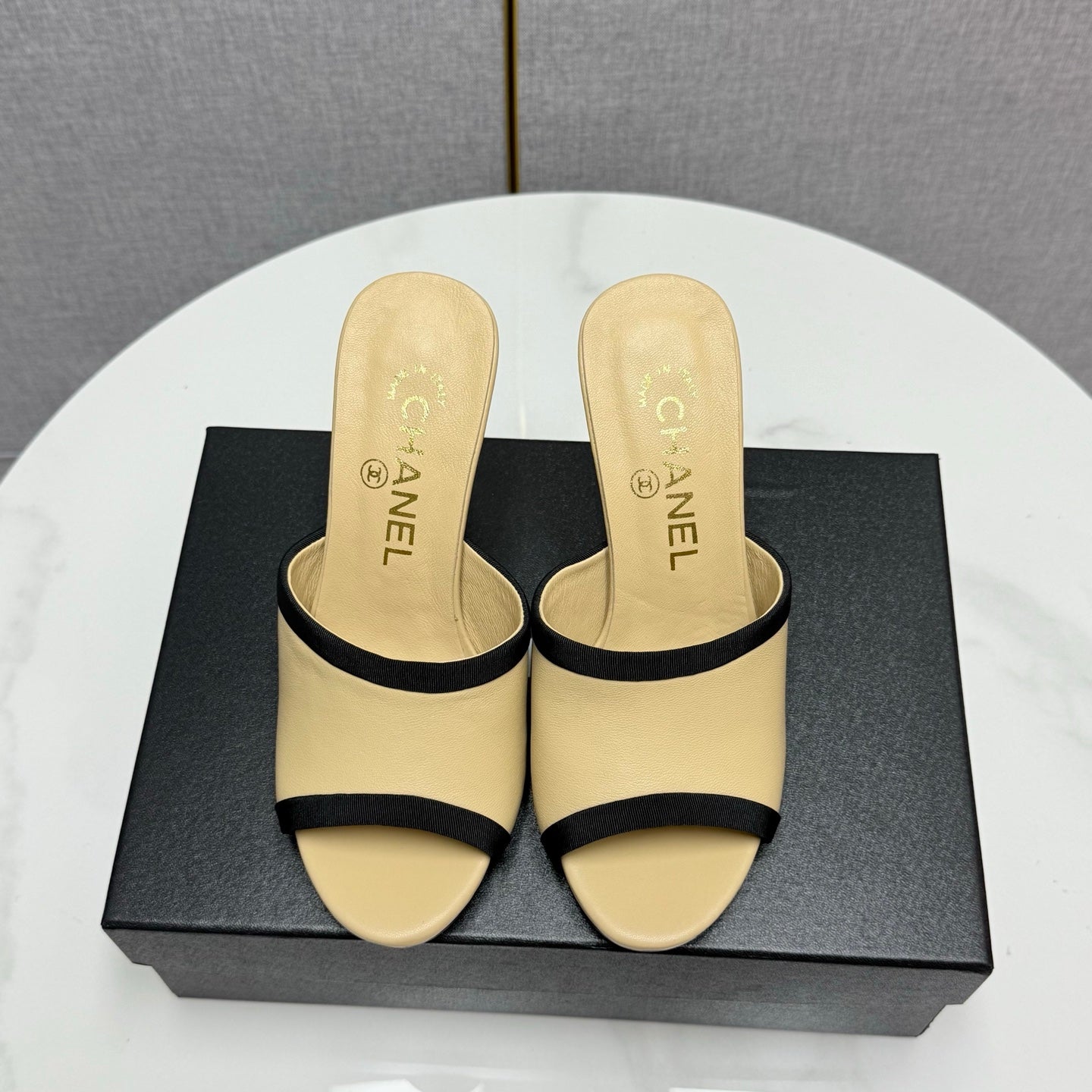 CC 25 High Heel Slippers 85mn Beige Black Sheepskin 368791