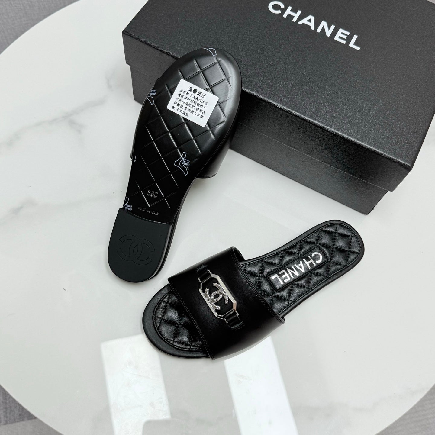 CC 25 Mule Sandals Black Sheepskin 368799