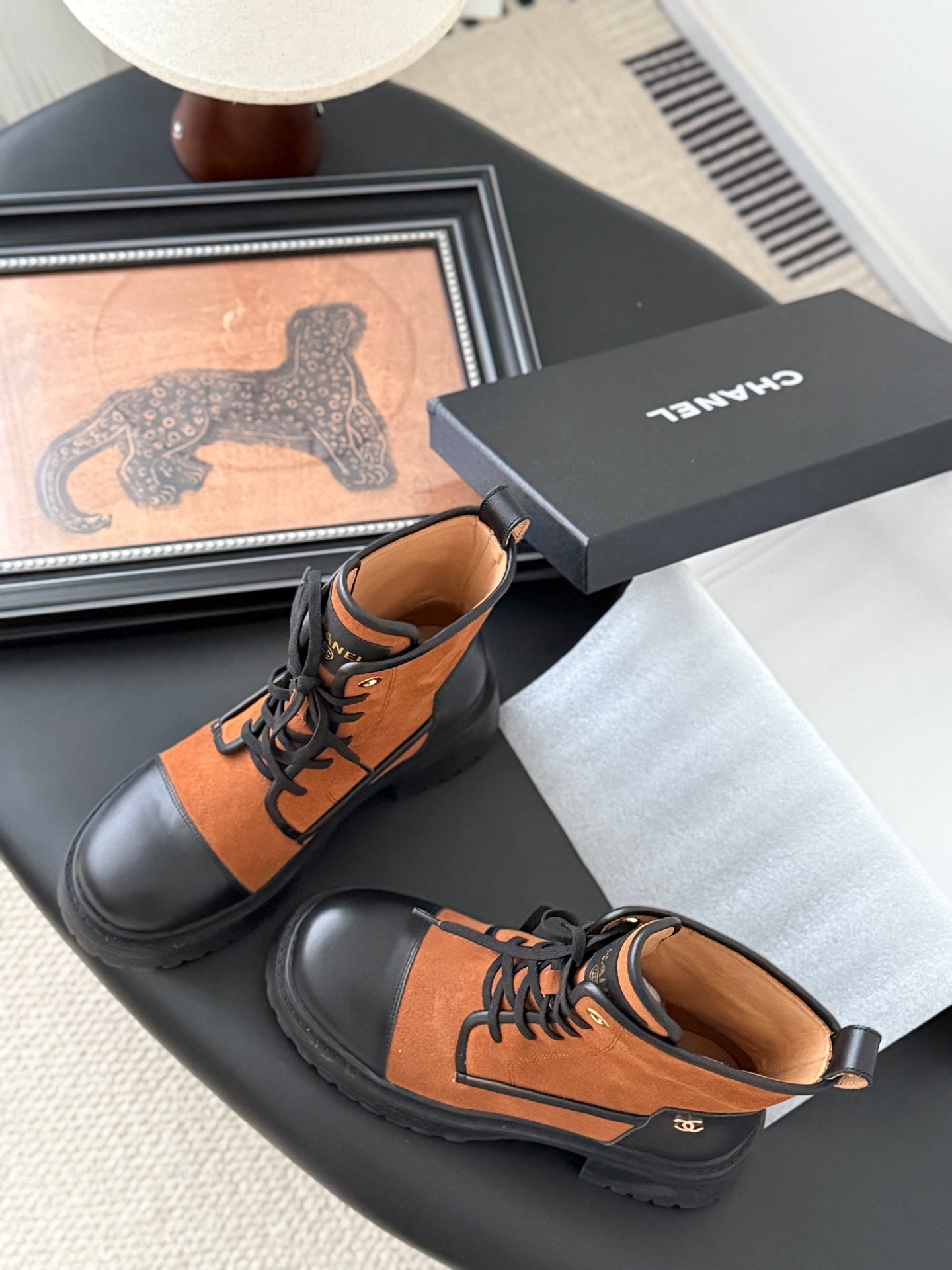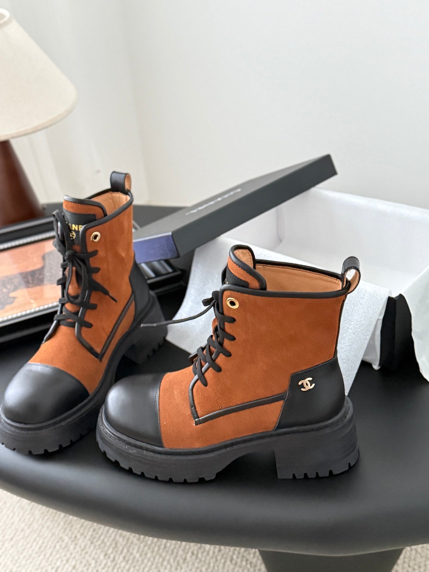 CC 25B Atelier Flats Boots Shoes Black Brown Sheepskin & Suede 458766