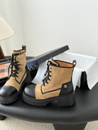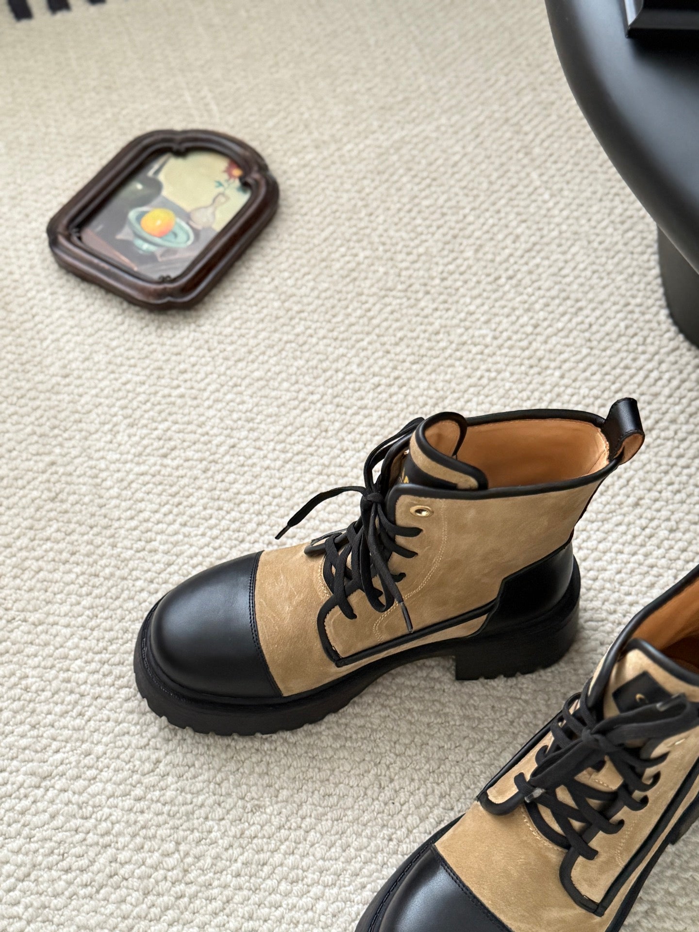 CC 25B Atelier Flats Boots Shoes Black Light Brown Sheepskin & Suede 458765