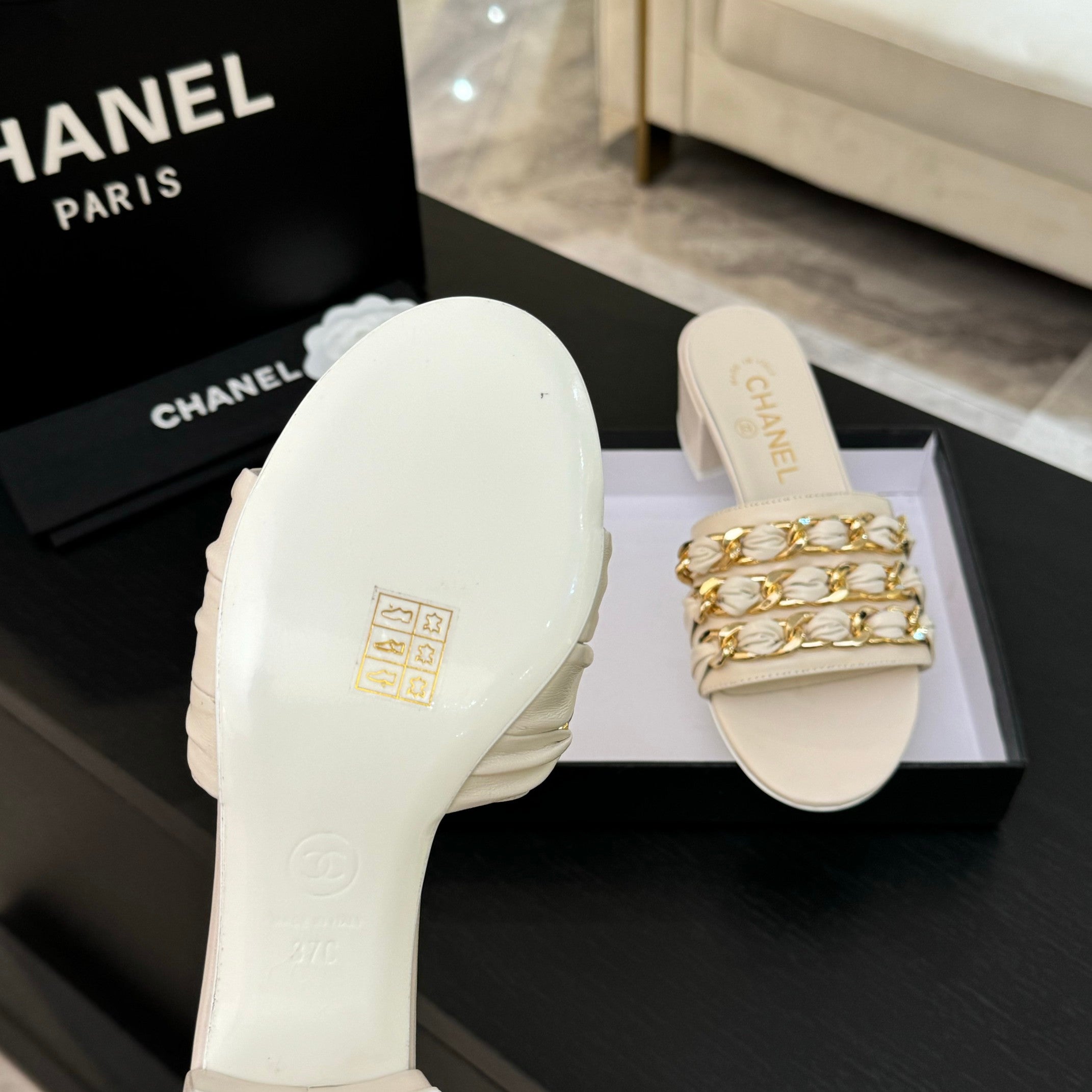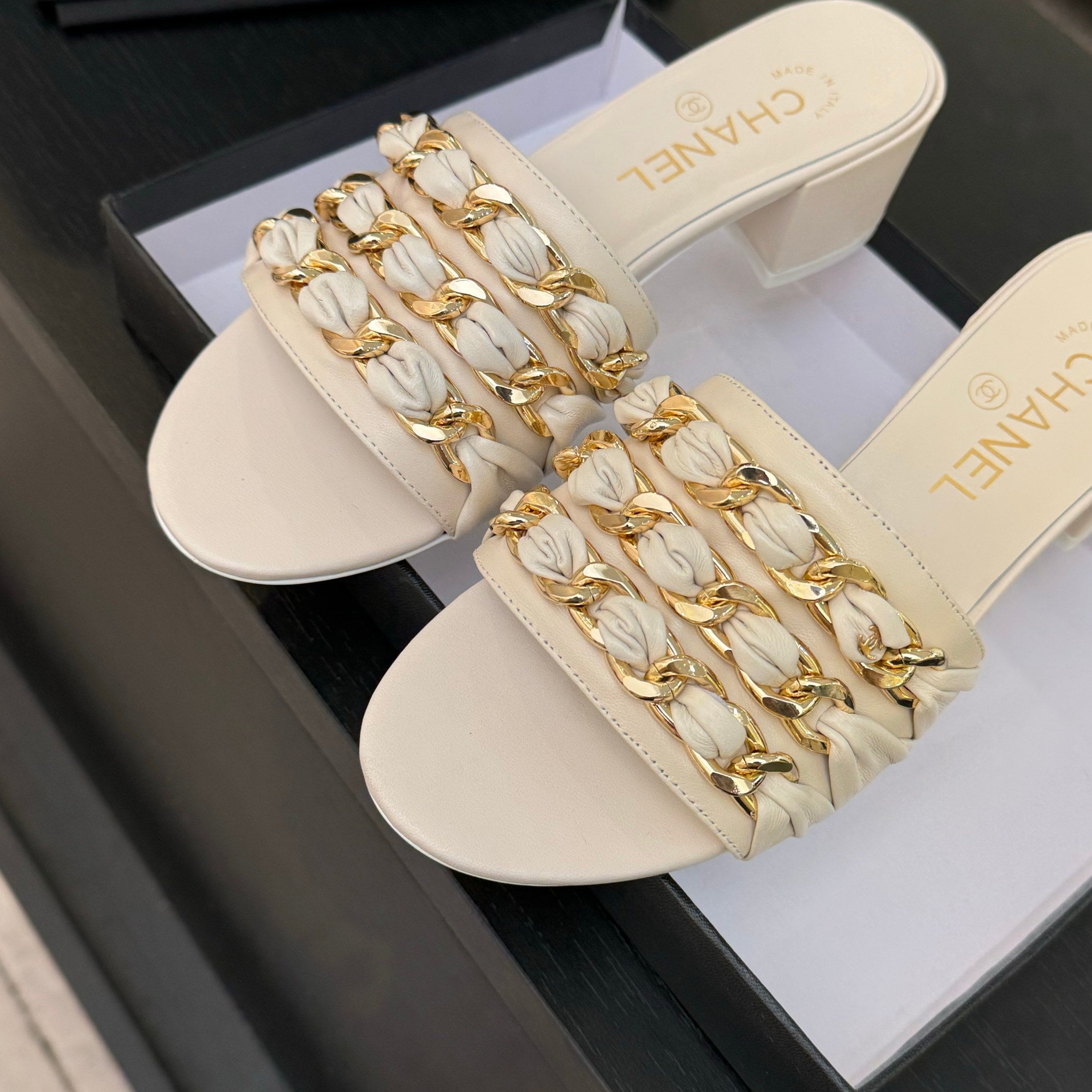 CC 25B Heel Mule Sandals 50mm Ivory Sheepskin With Chain 373817