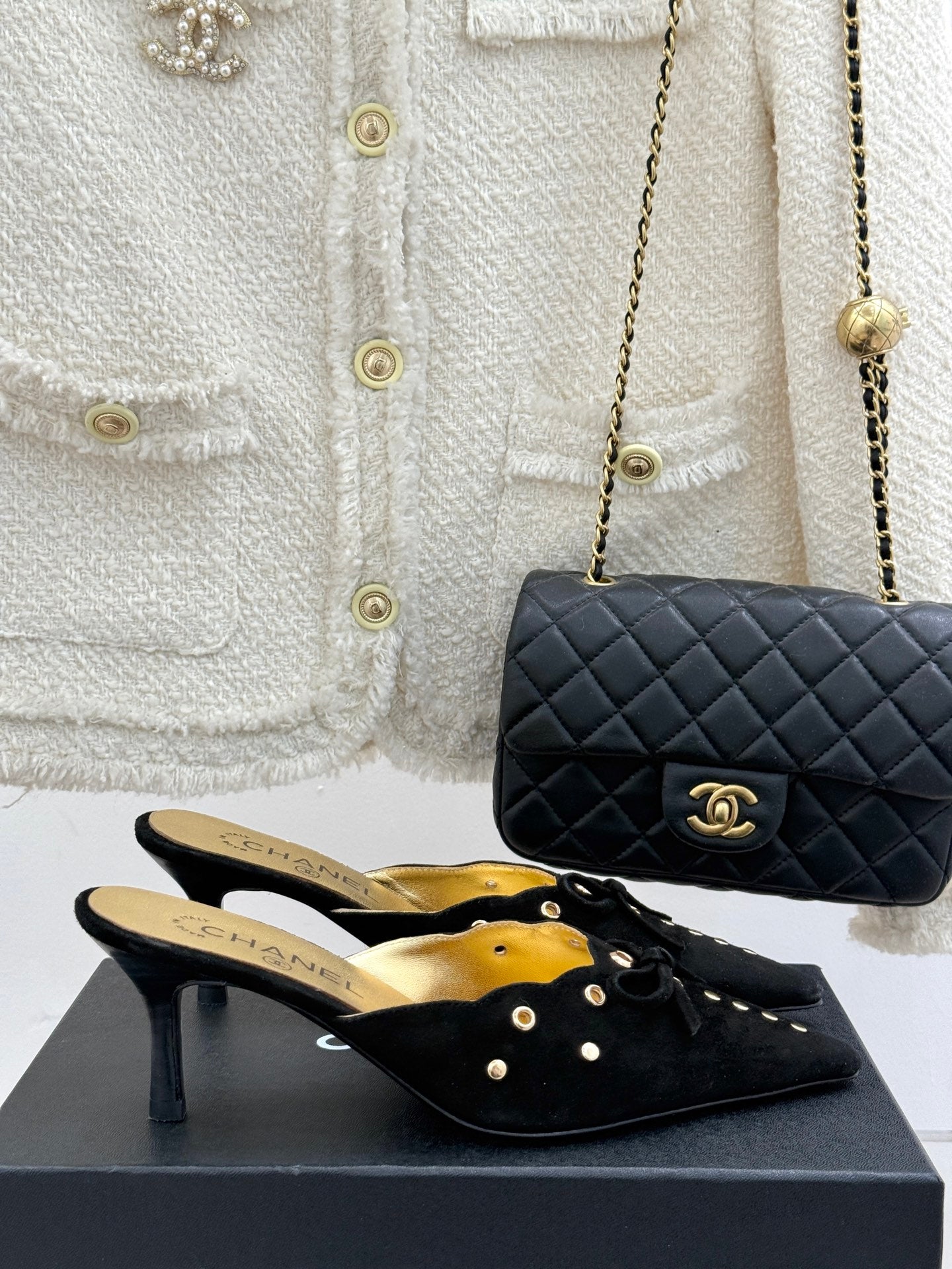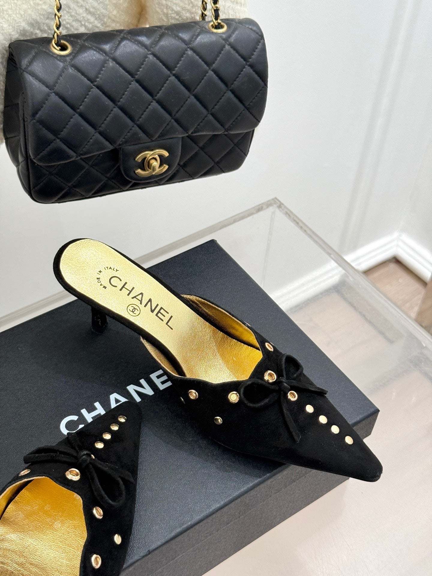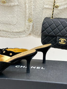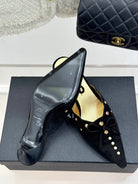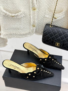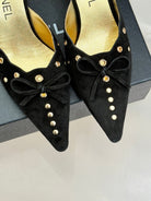 CC 25C Bowknot Pointed High Heel Half Slippers 60mm Black Suede 265657