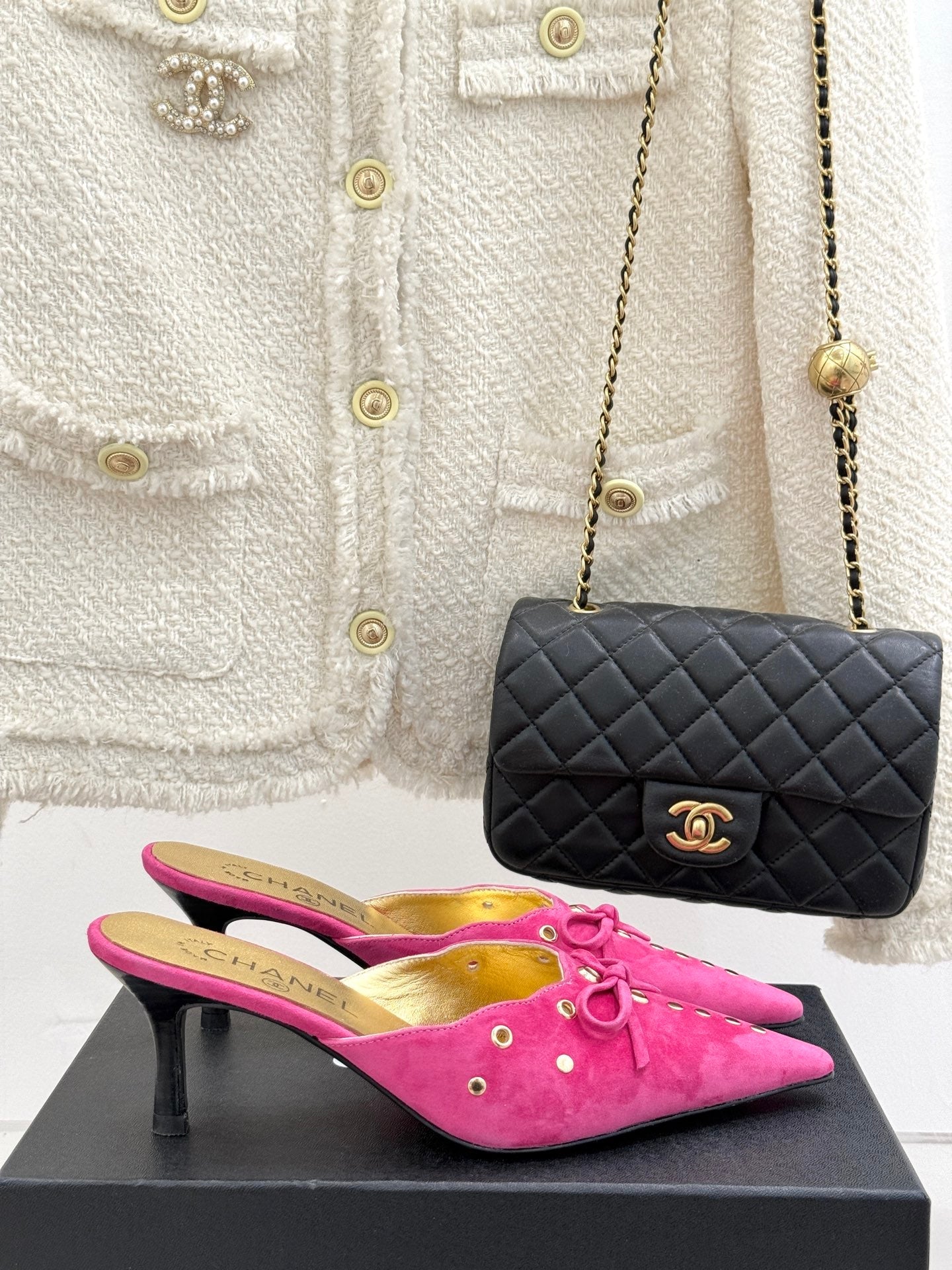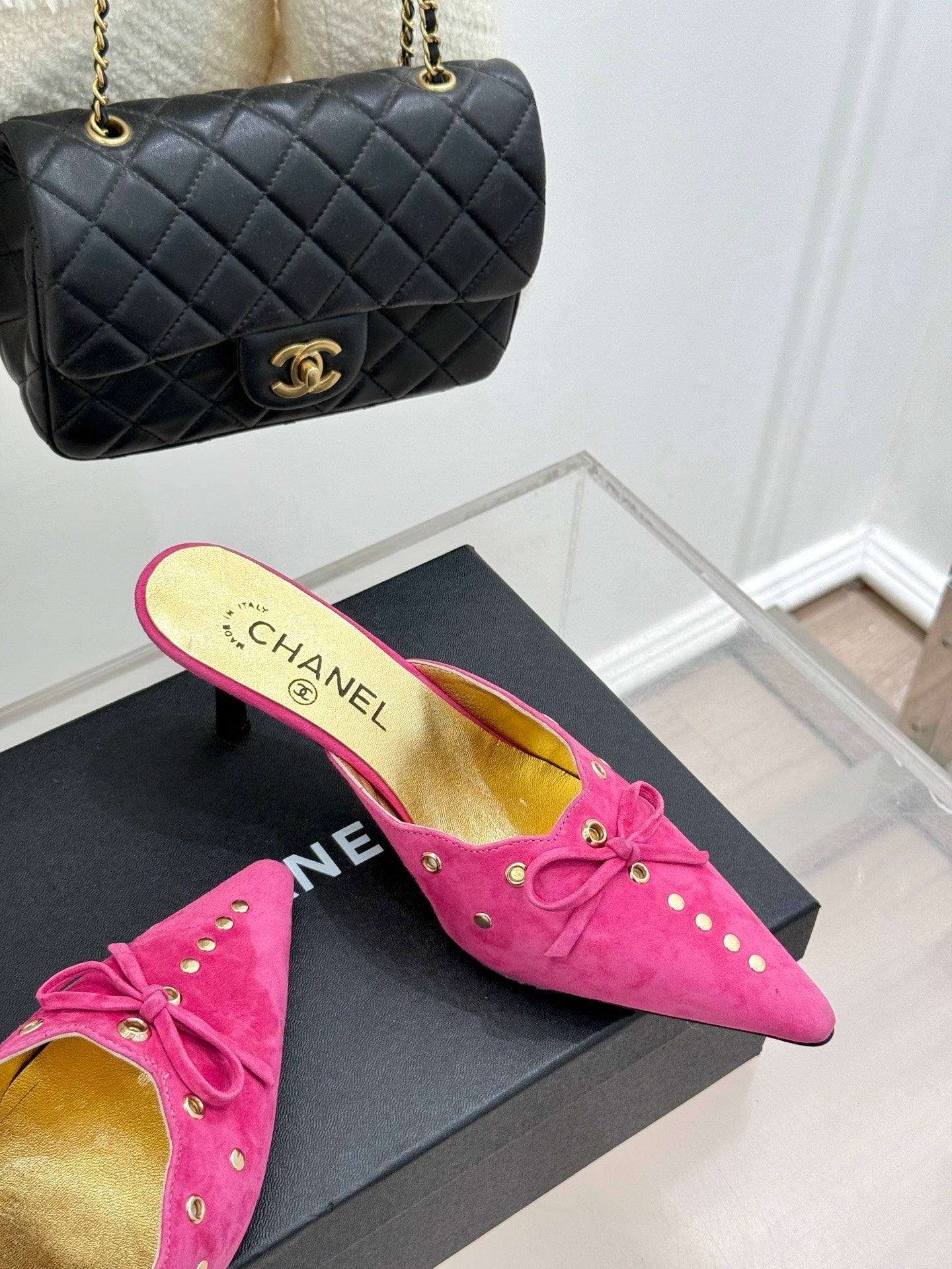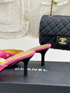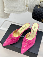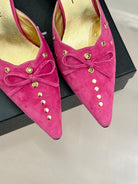 CC 25C Bowknot Pointed High Heel Half Slippers 60mm Pink Suede 265656