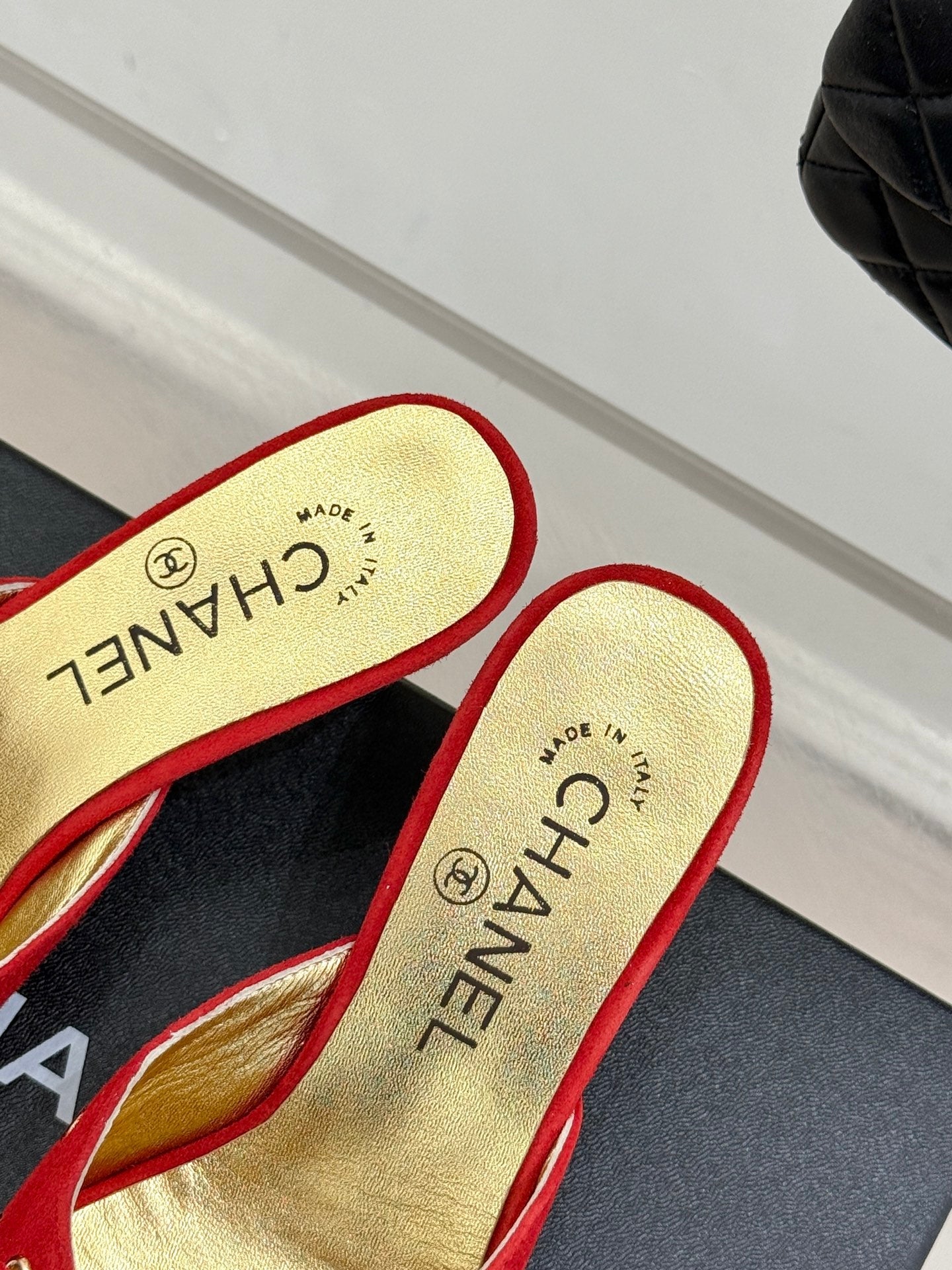CC 25C Bowknot Pointed High Heel Half Slippers 60mm Red Suede 265658