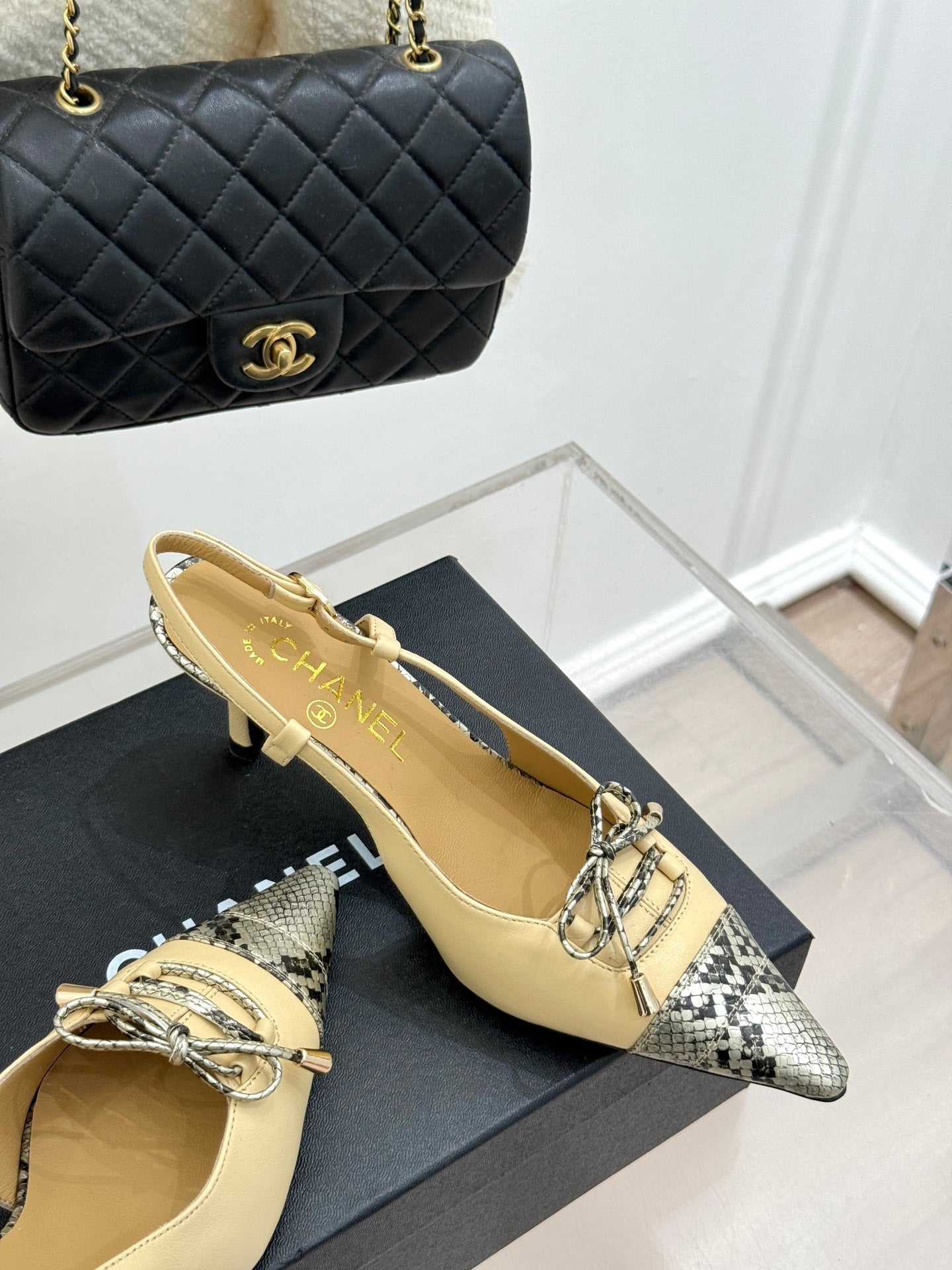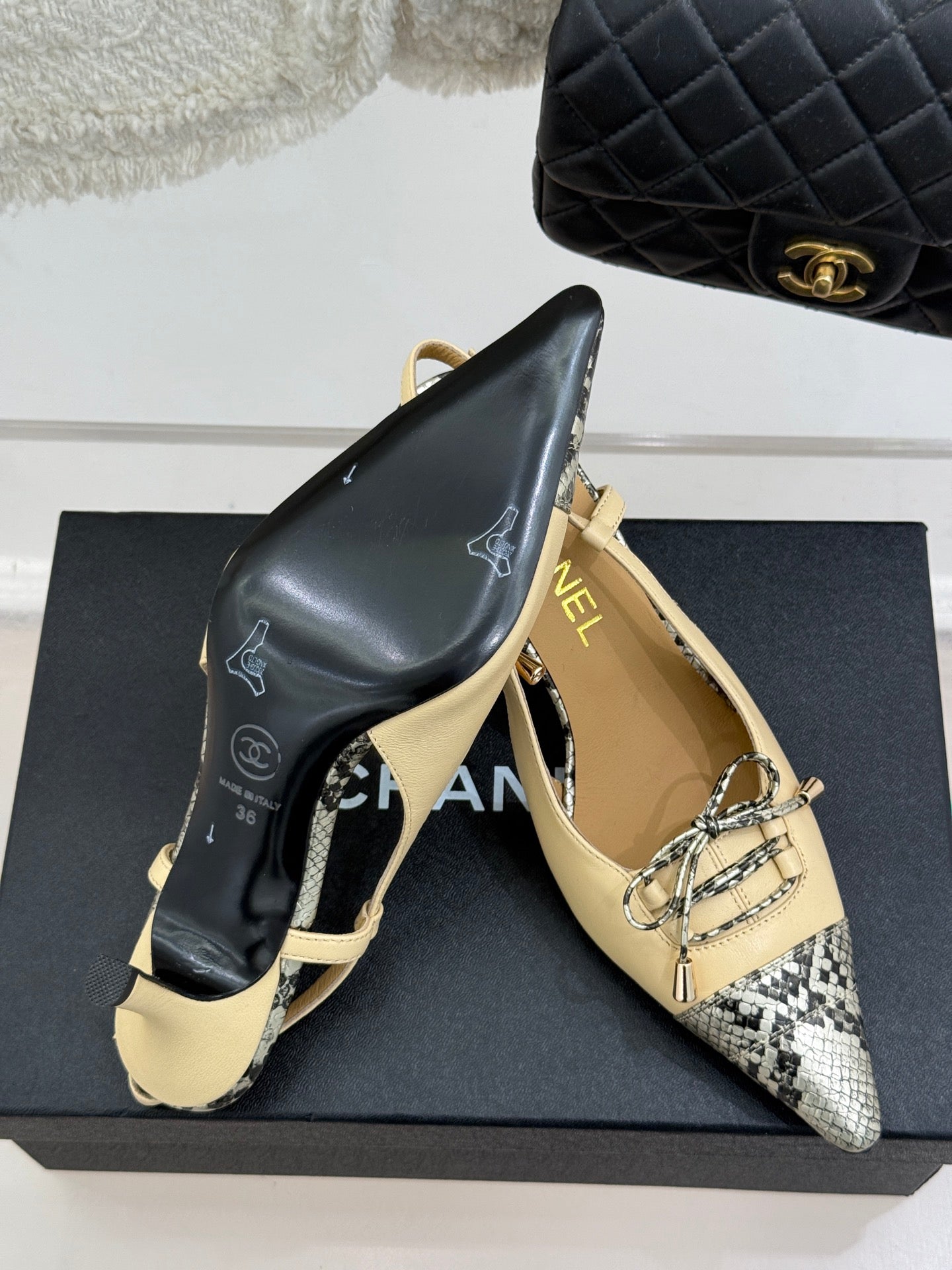 CC 25C Bowknot Slingback Sandal 60mm Beige Sheepskin Mix Python Pattern 265653