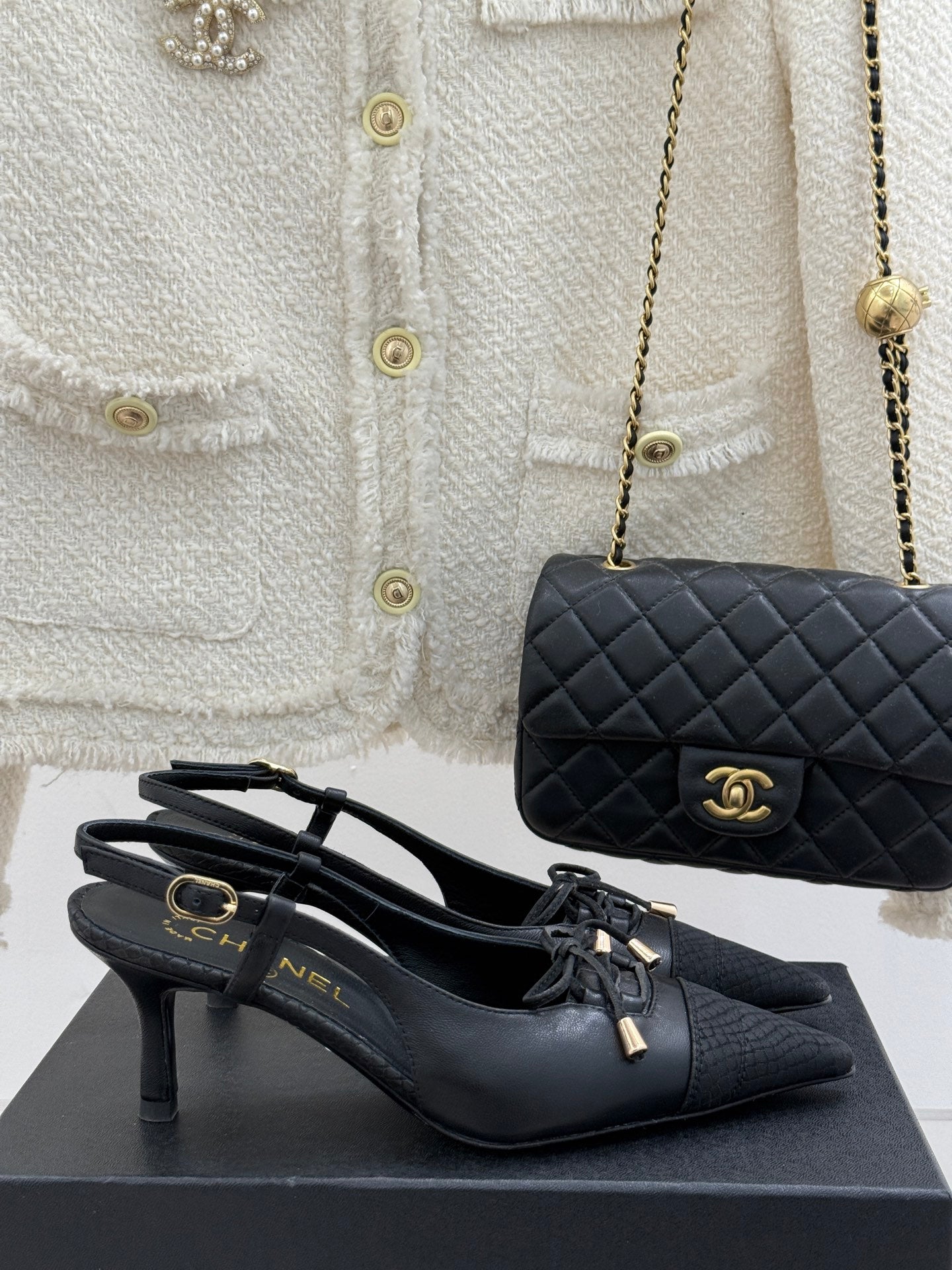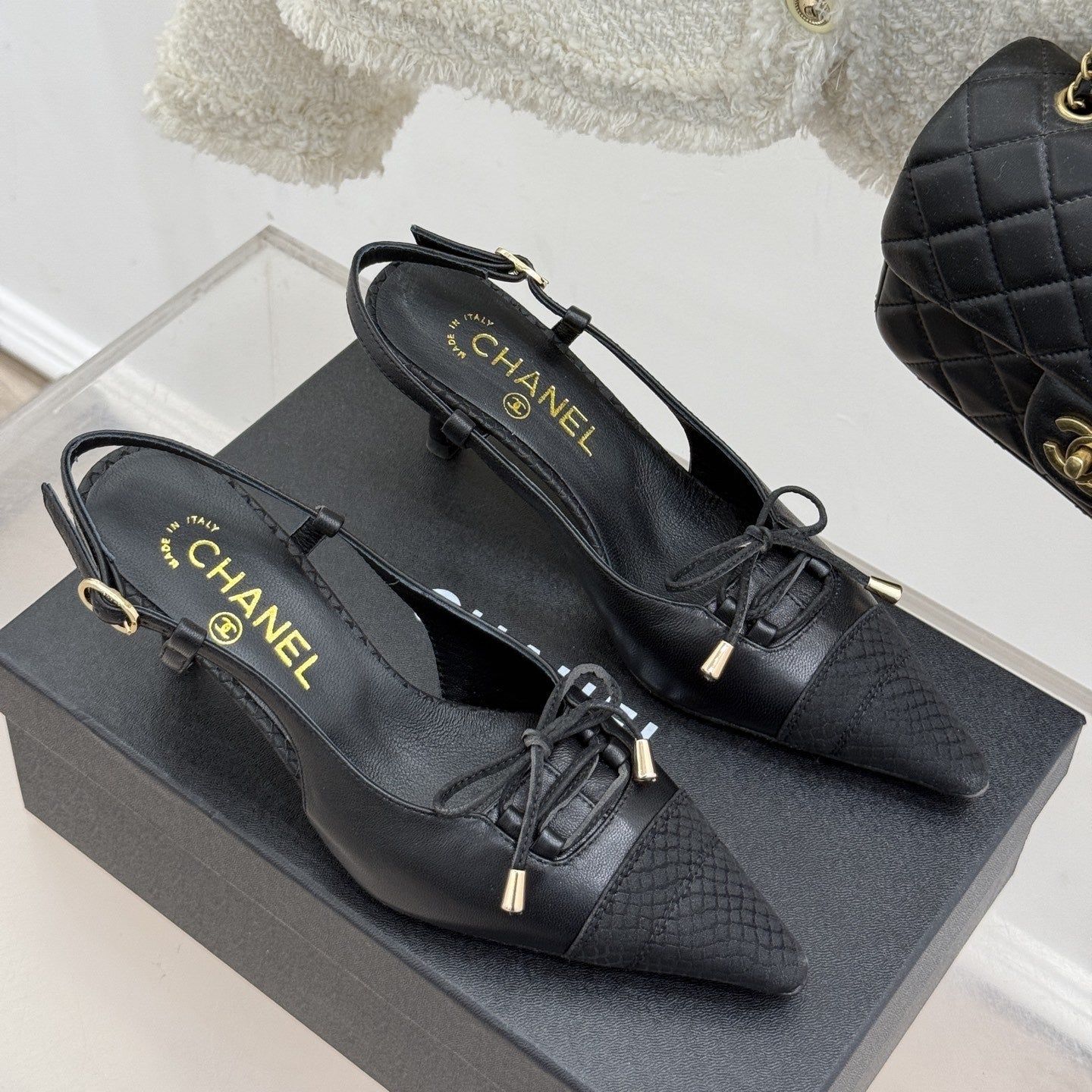 CC 25C Bowknot Slingback Sandal 60mm Black Sheepskin Black Grosgrain 265655
