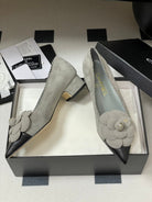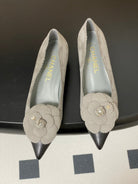 CC 25C Classic Camellia Pointed High Heels Pump 35mm Grey Suede 247611
