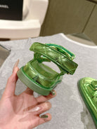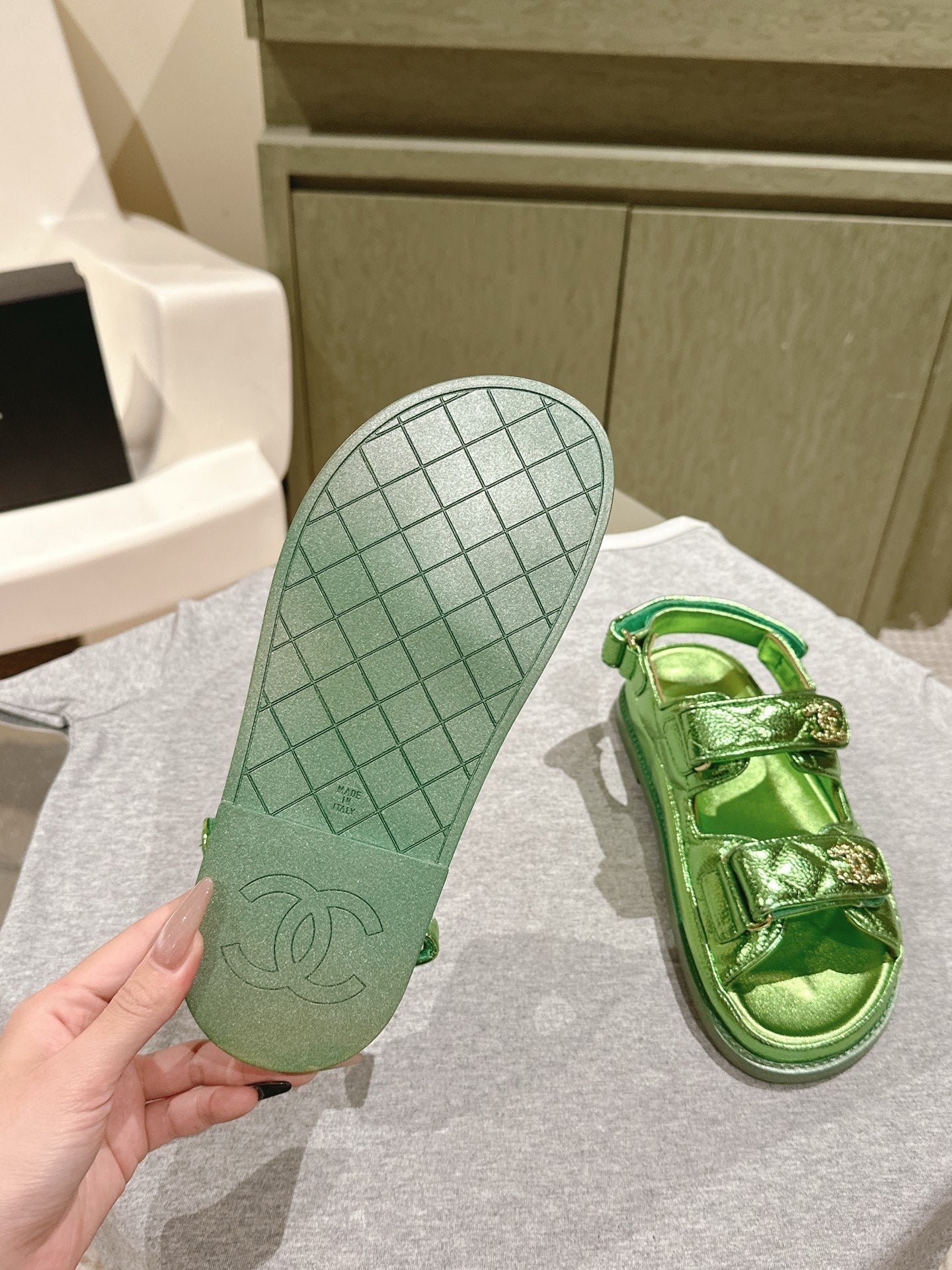 CC 25C Dad Sandals Green Metalic Grained Calfskin 462232