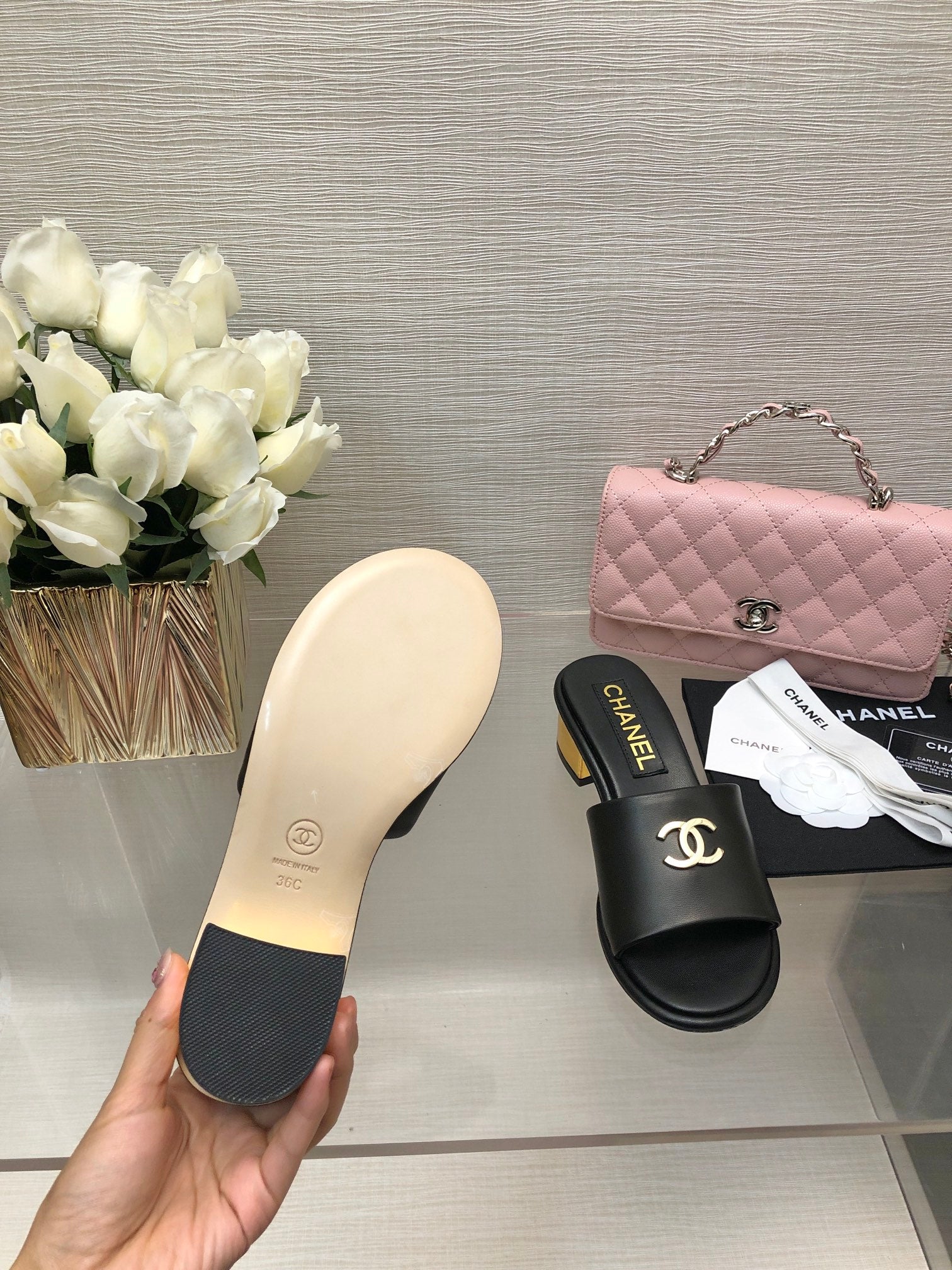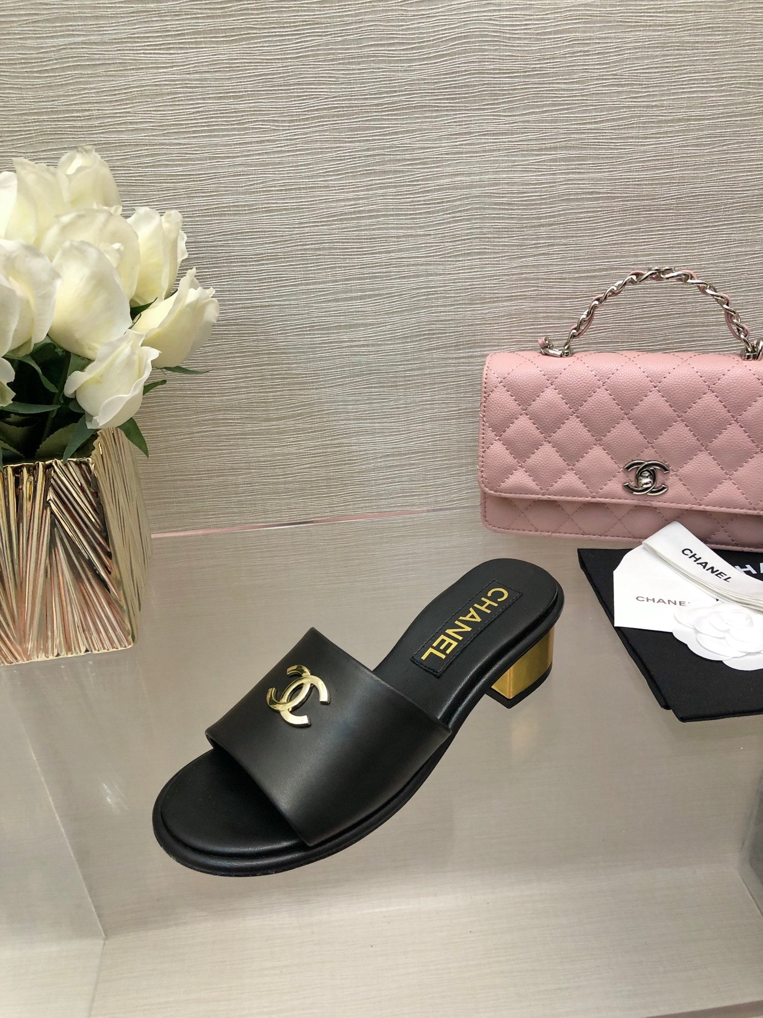 CC 25C Mid Heel Mule Black Genuine Calfskin 212956