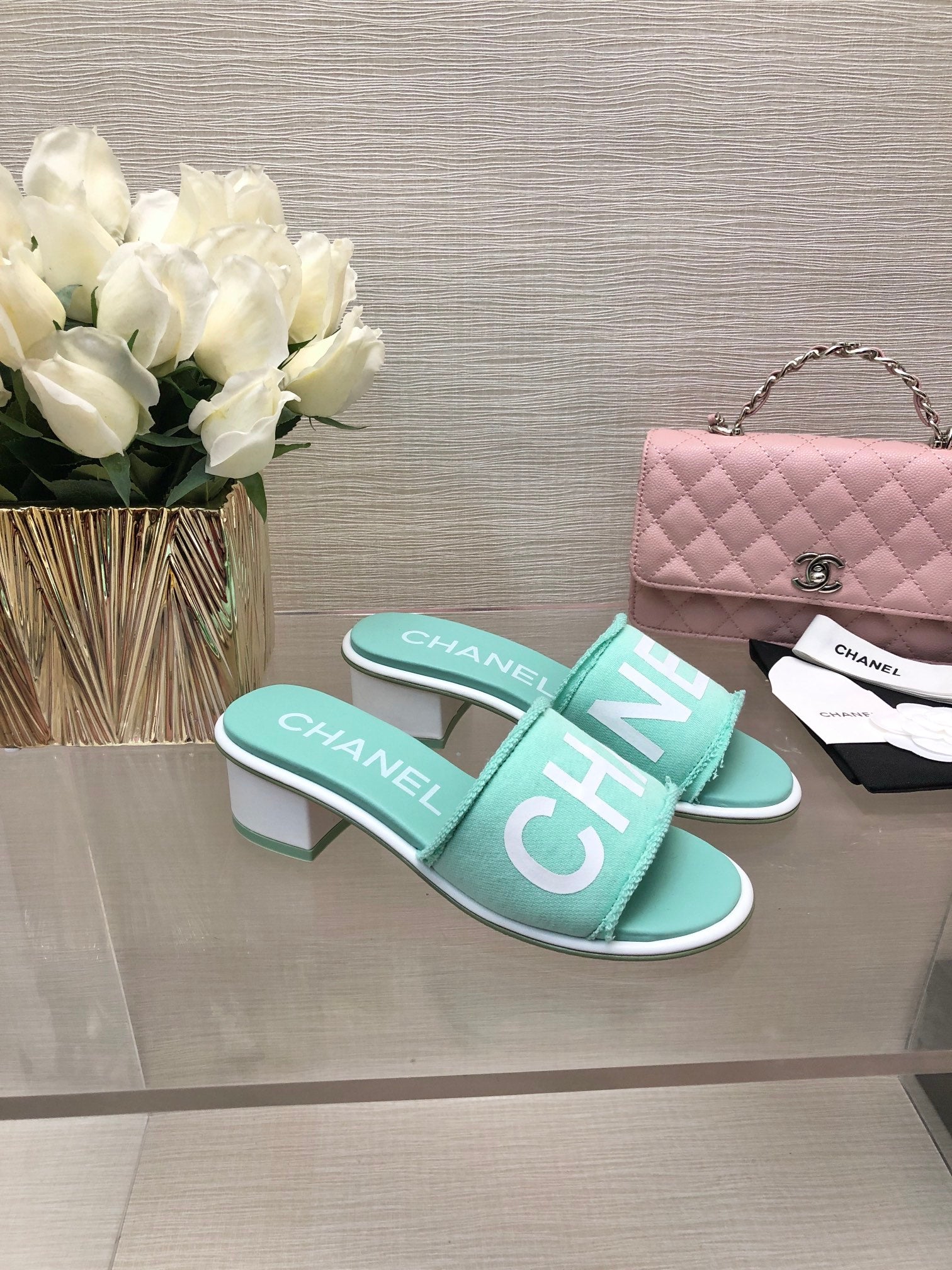 CC 25C Mid Heel Mule Turquoise Fabric Material 212957