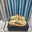 CC 25C Sandal Triple Straps Gold Calfskin