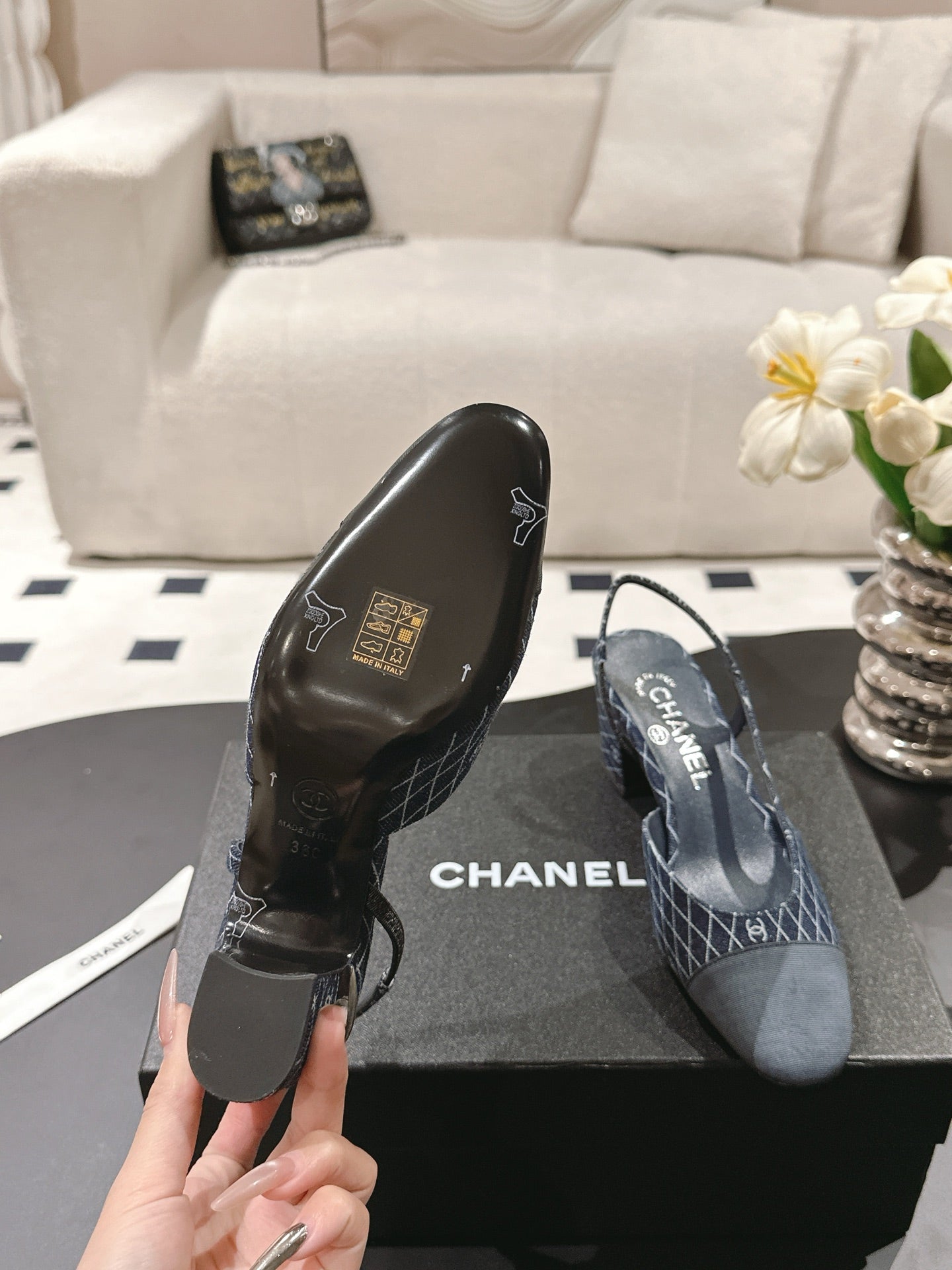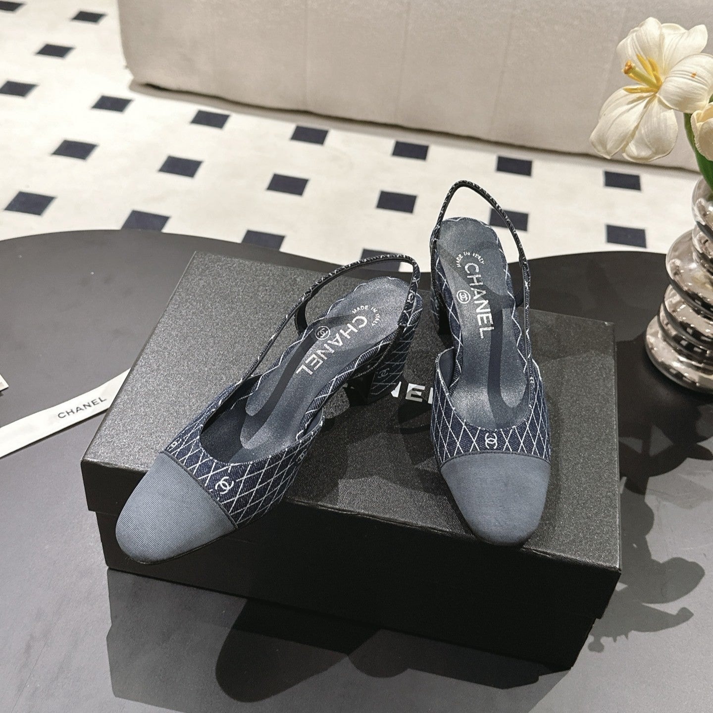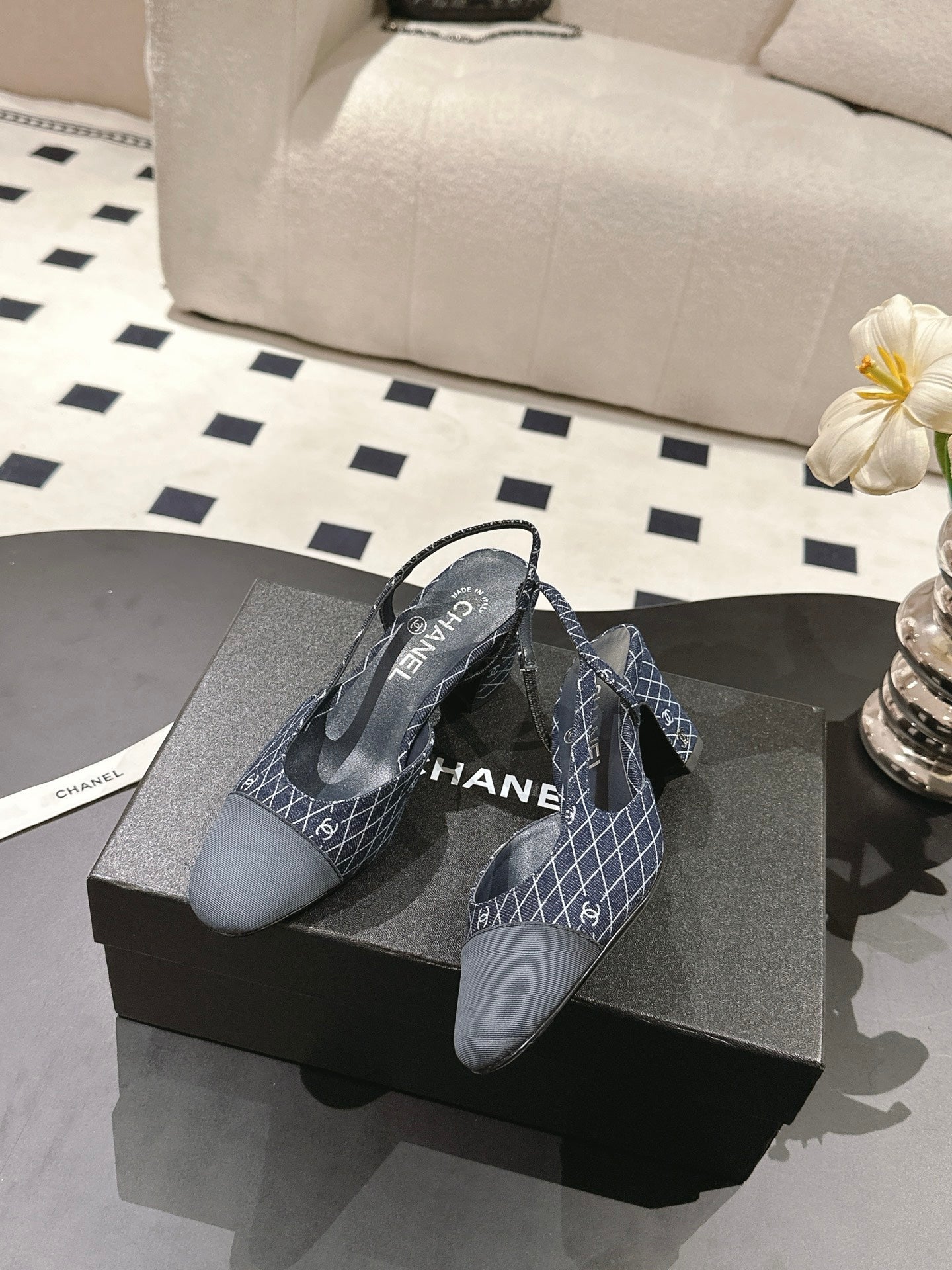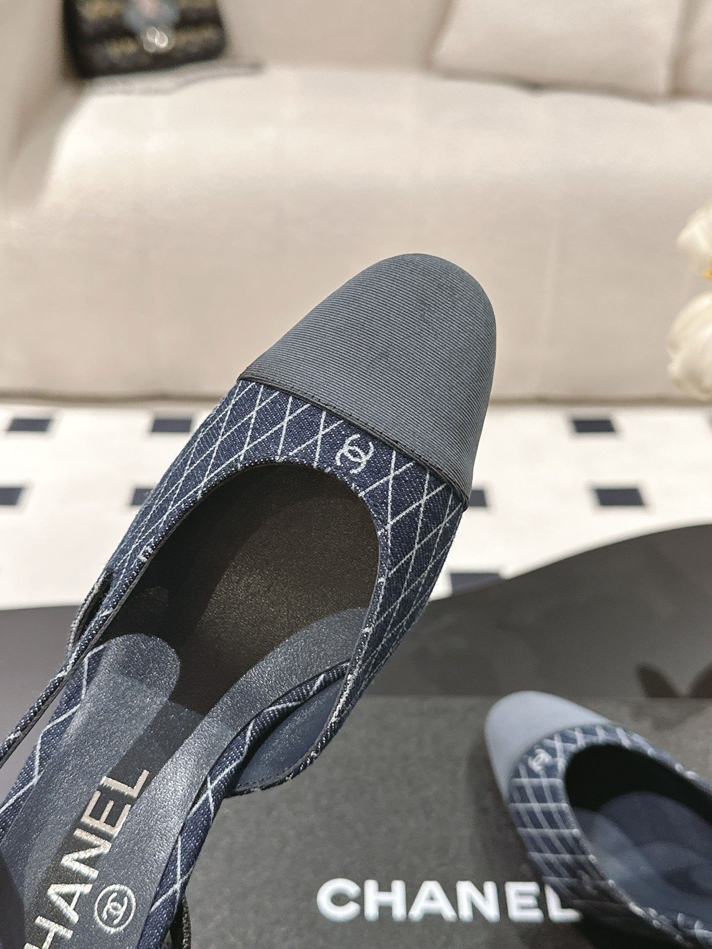 cc 25c slingback 55mm cross line pattern dark blue denim 237488