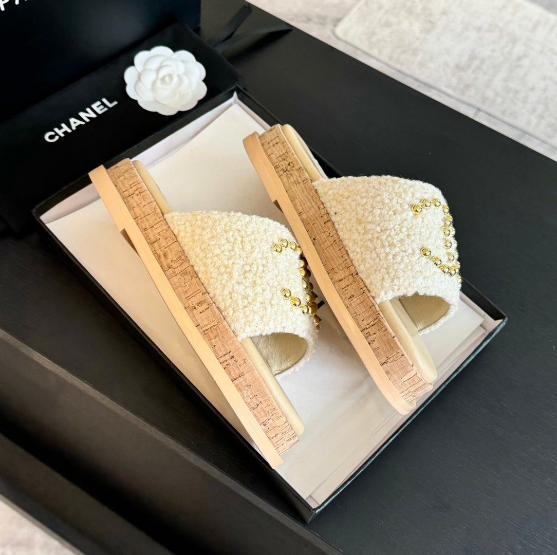 CC 25C Slippers Cream Satin Fabric 212978