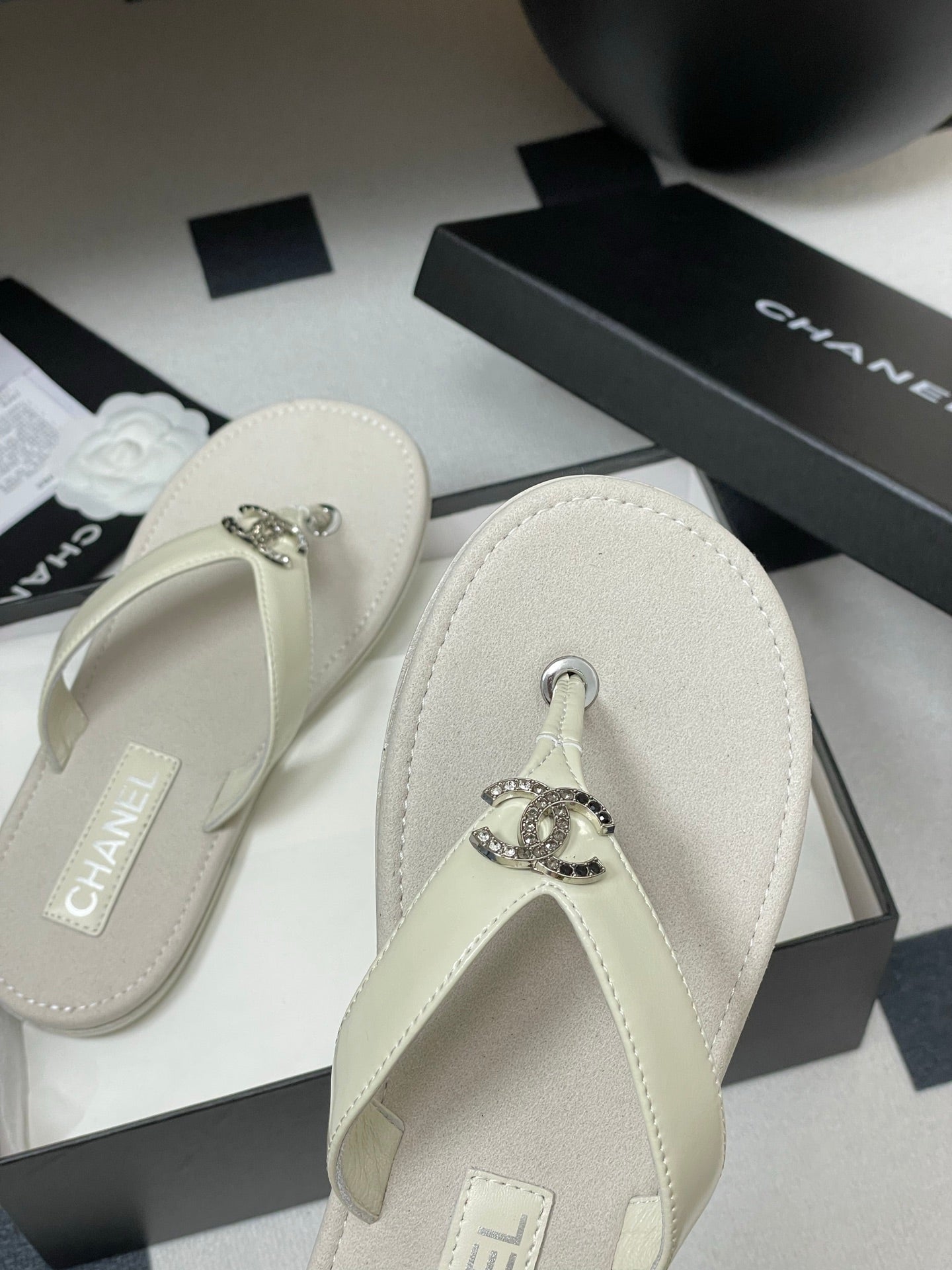 CC 25P Double C 1 Motif Thongs Sandal Grey Sheepskin 247704