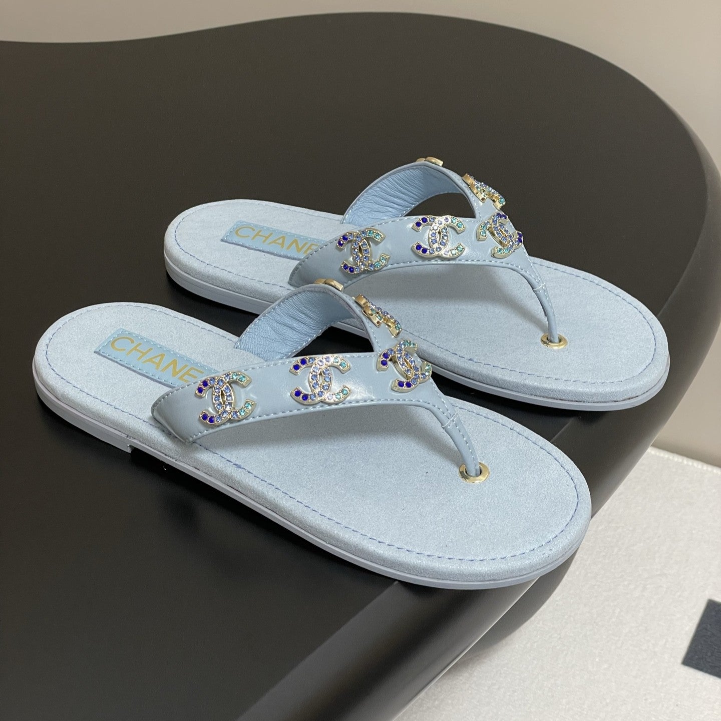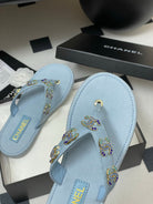 CC 25P Double C 5 Motifs Thongs Sandal Baby Blue Sheepskin 247696