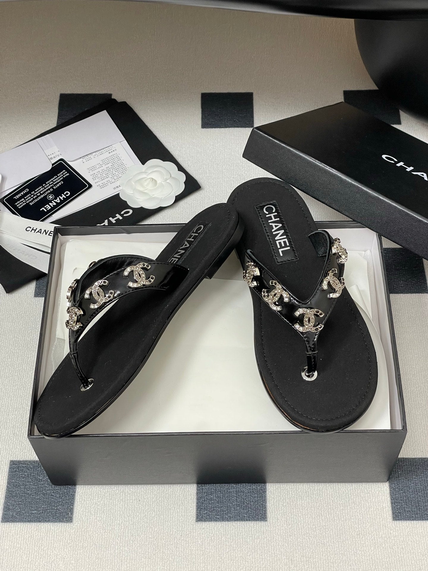 CC 25P Double C 5 Motifs Thongs Sandal Black Sheepskin 247697