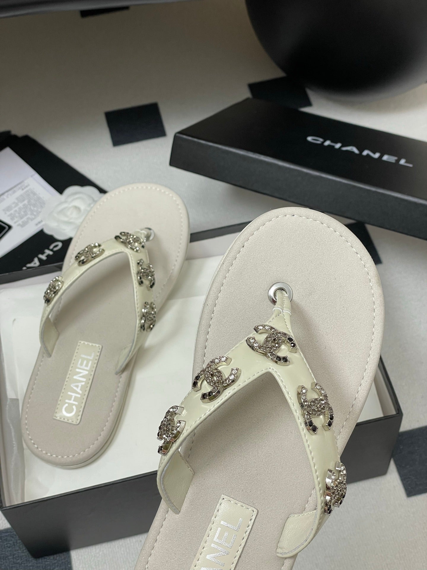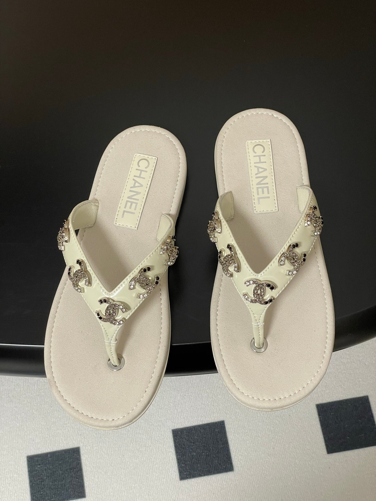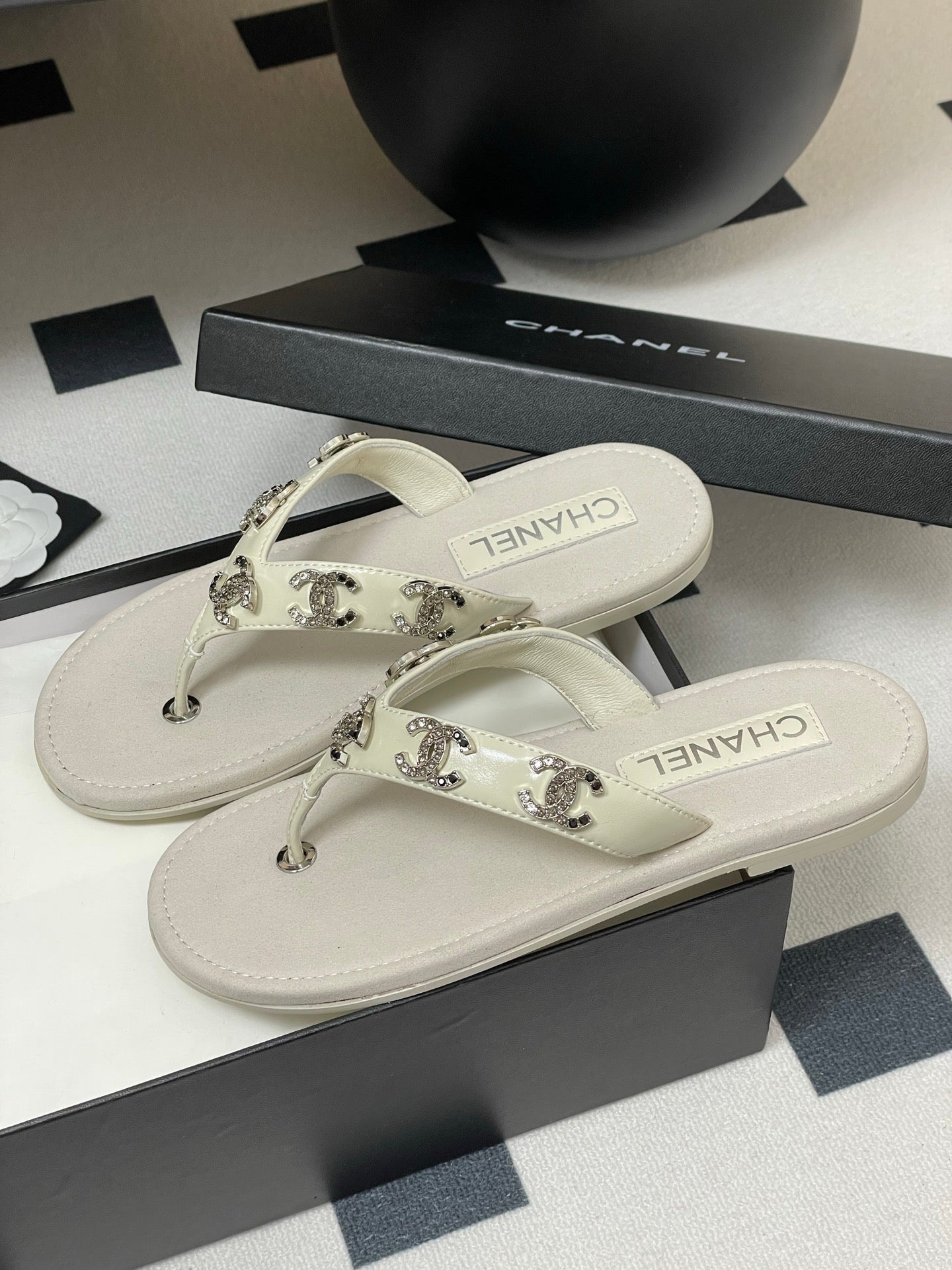 CC 25P Double C 5 Motifs Thongs Sandal Grey Sheepskin 247698
