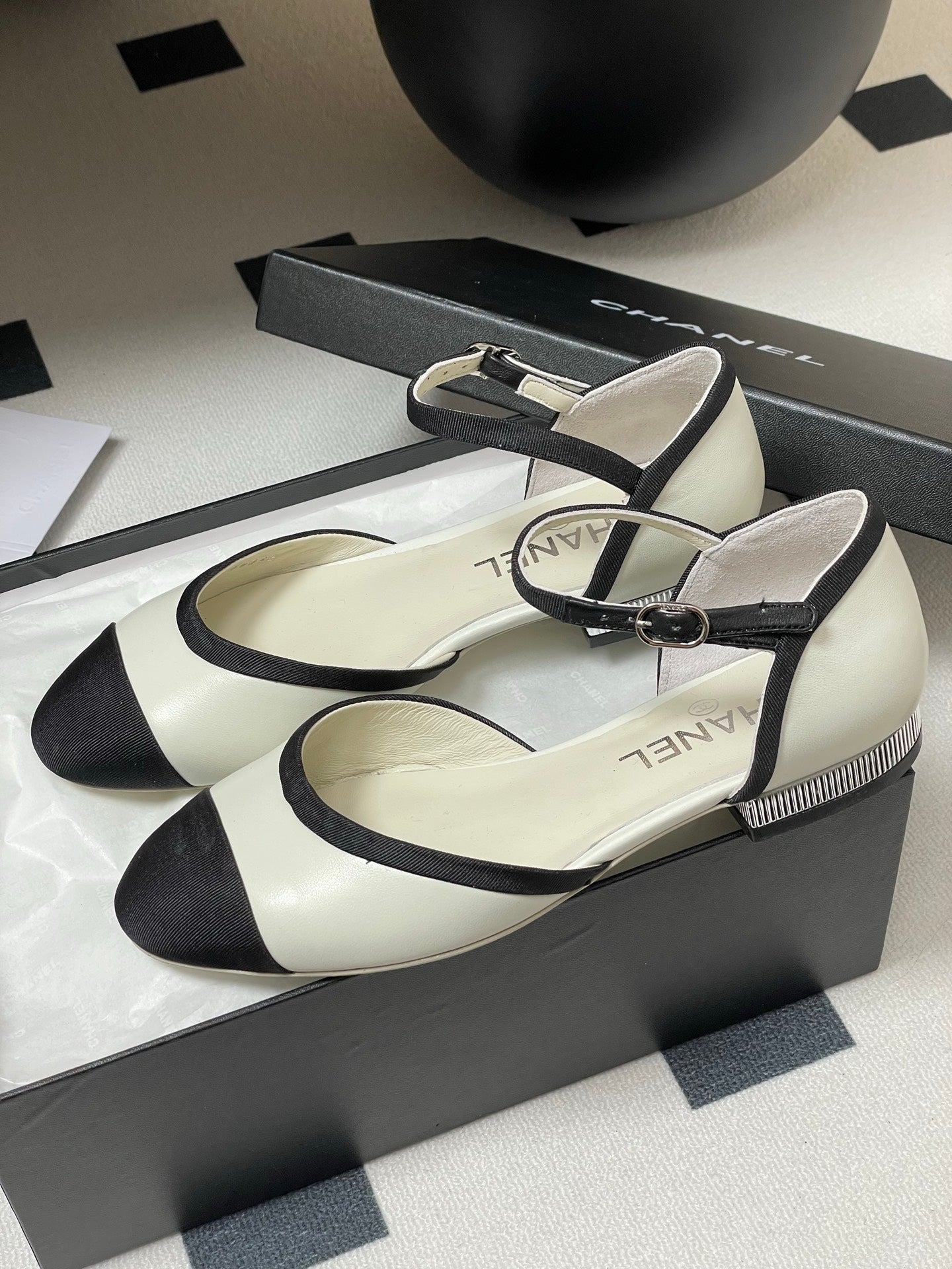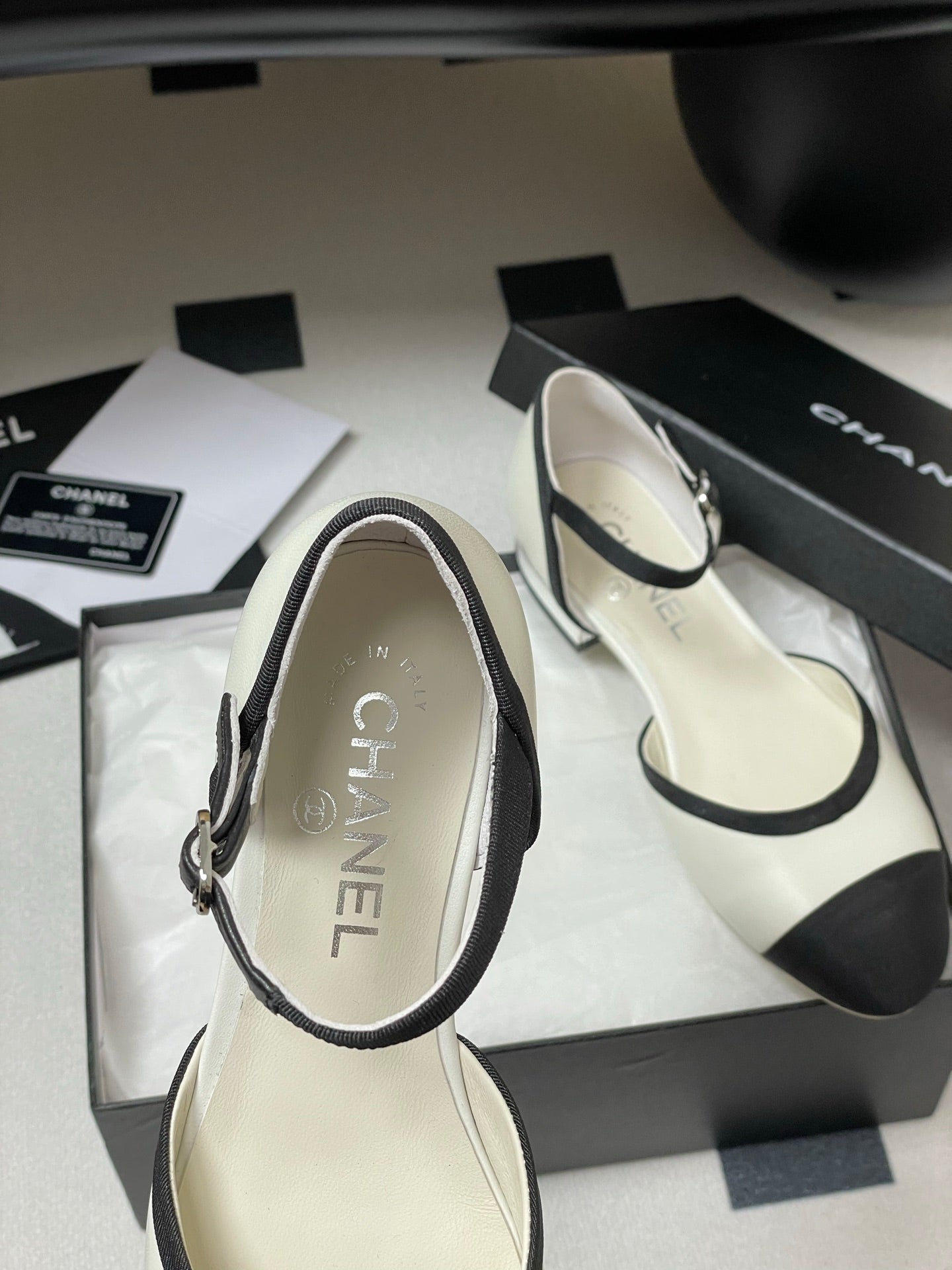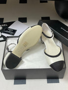 CC 25P Small Hollow Mary Jane White Sheepskin Black Grosgrain 247726