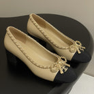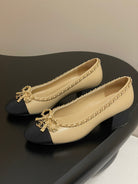 CC 25S 60mm Chain Bow Single Pumps Beige Sheepskin Black Grosgrain 247662