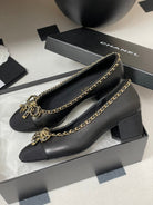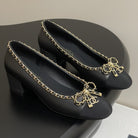 CC 25S 60mm Chain Bow Single Pumps Black Sheepskin Grosgrain 247664