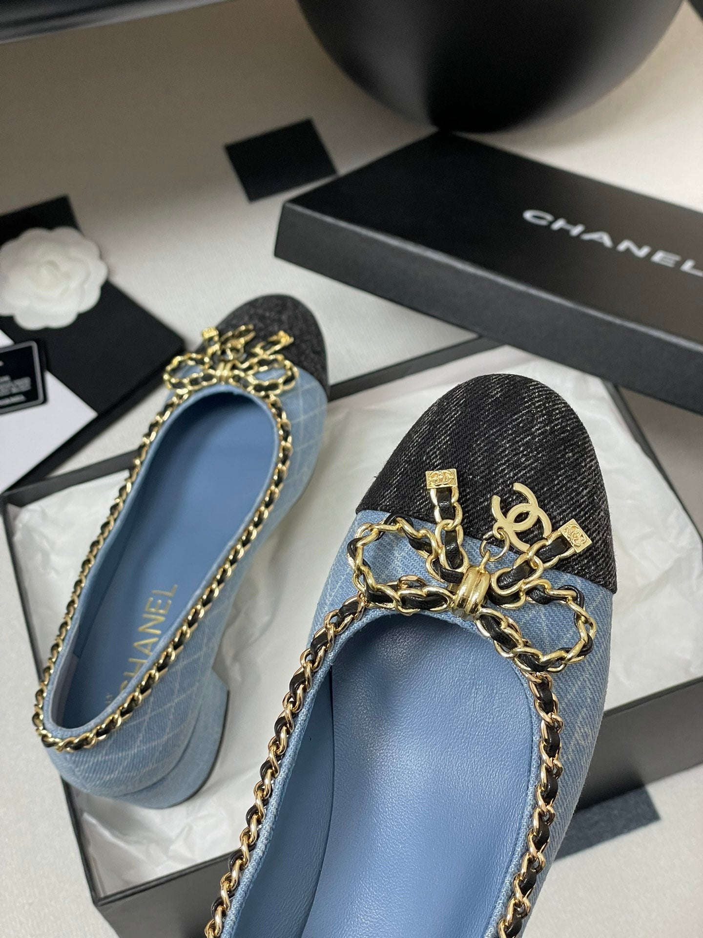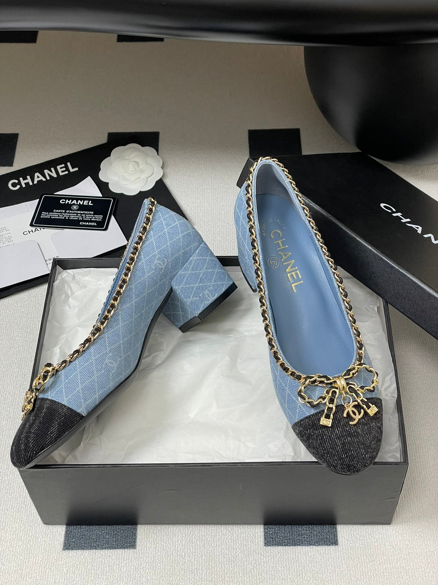 CC 25S 60mm Chain Bow Single Pumps Blue Denim Black Grosgrain 247665