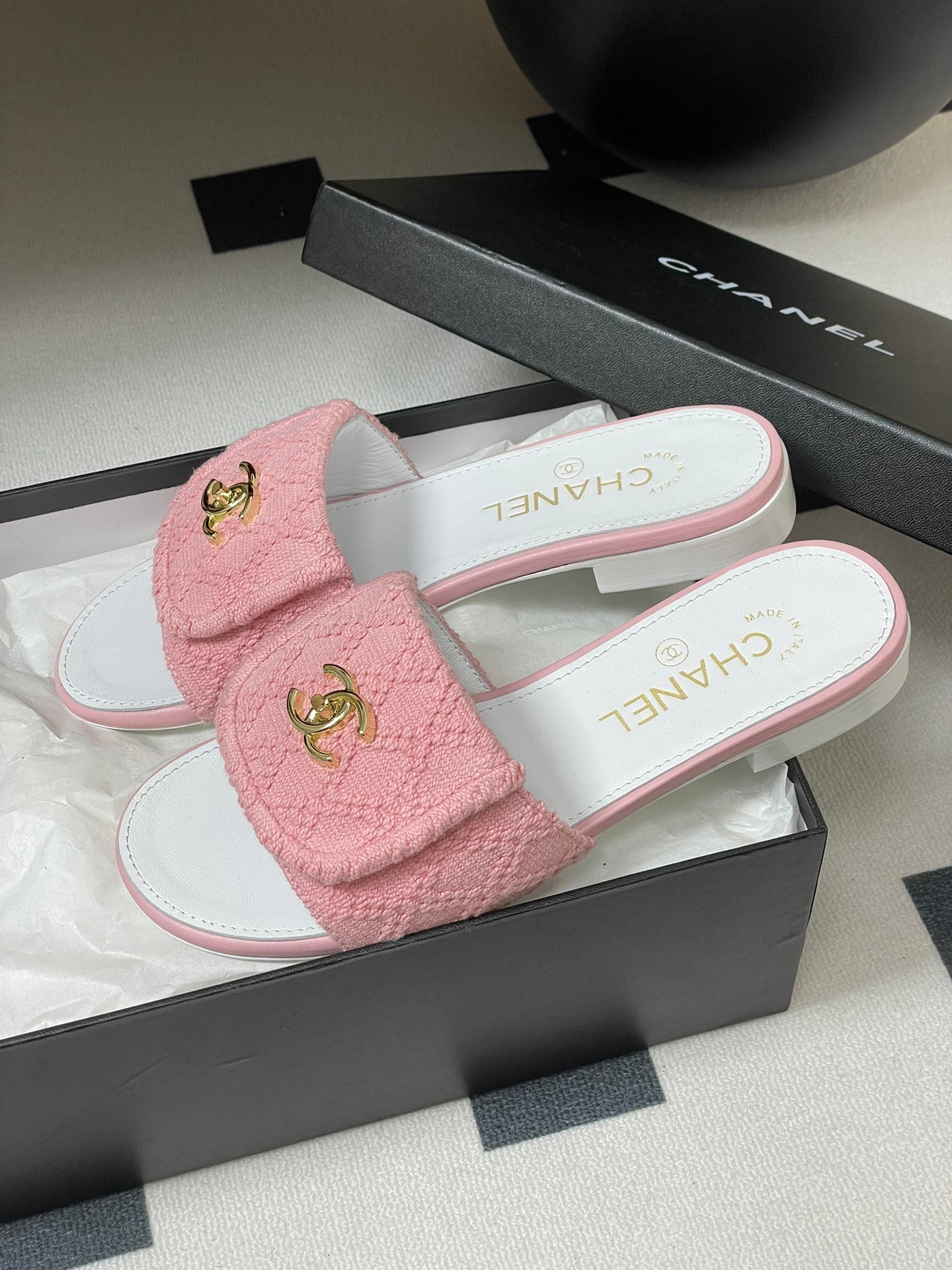 CC 25S Buckle Bag Mule Pink Fabric White Sheepskin 247599